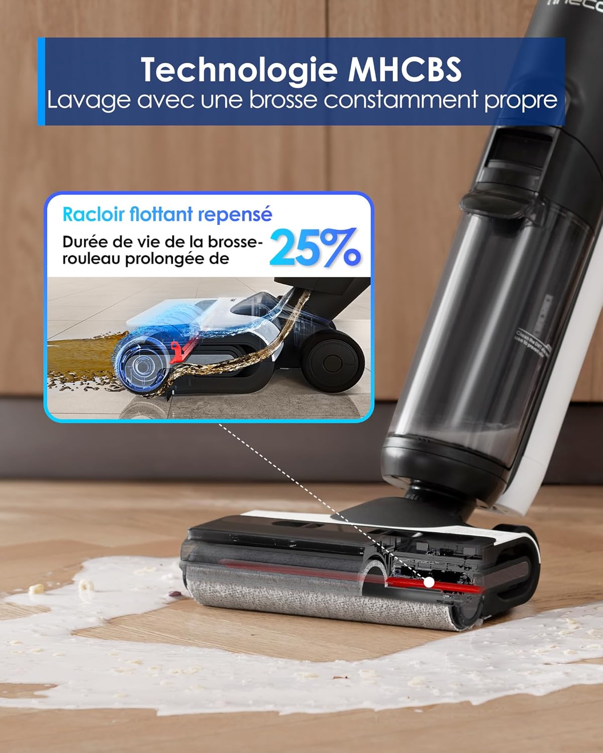 Tineco Floor One Switch S6 Nettoyeur de Sol, Aspirateur Laveur sans Fil 5-en-1, Séchage Flash en 5 Min, Auto-Nettoyage, Brosse ZeroTangle, Nettoyage Angles des 2 côtés