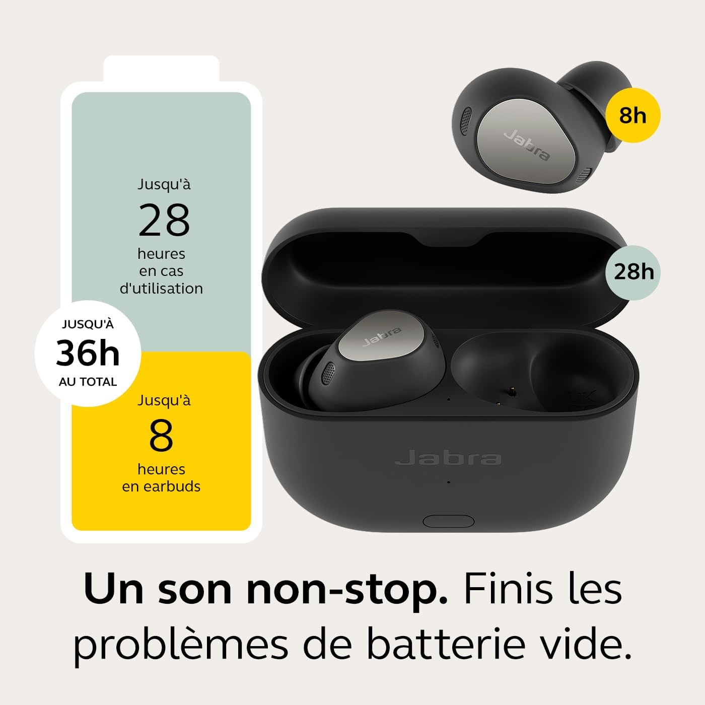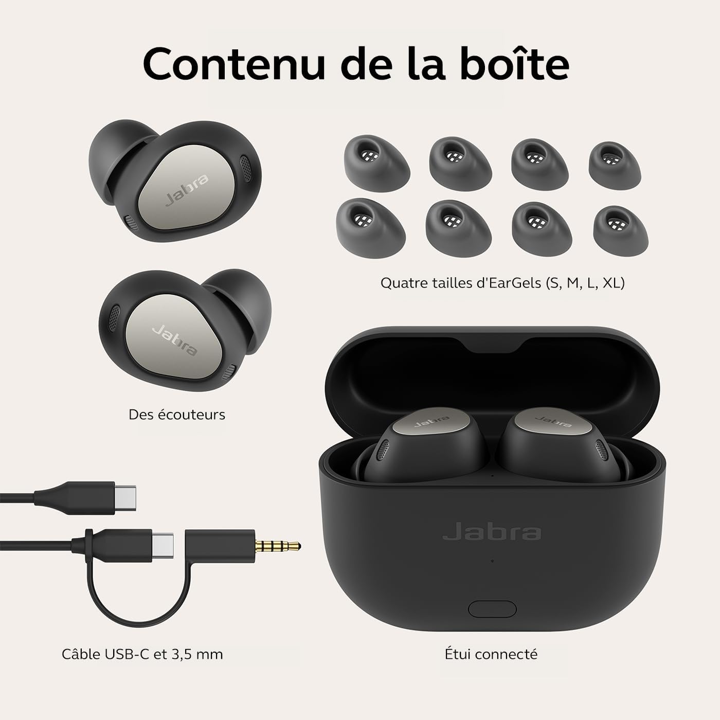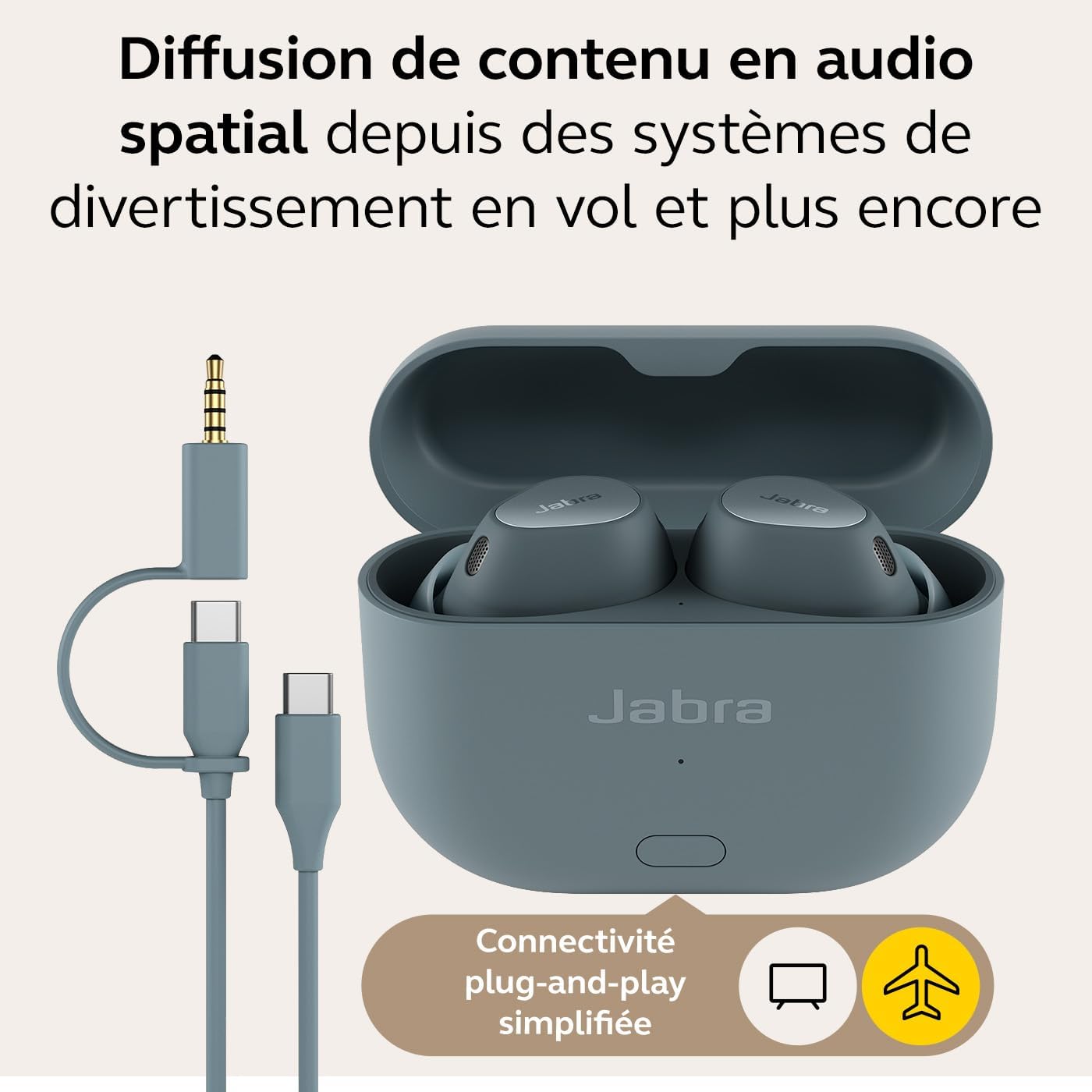 Jabra Elite 10 Gen 2 Écouteurs sans Fil Bluetooth, Audio Spatial Optimisé, Le Audio Smart Case, Design Semi-Ouvert, ANC Avancée, 6 Microphones intégrés et jusqu'à 36 Heures d'autonomie