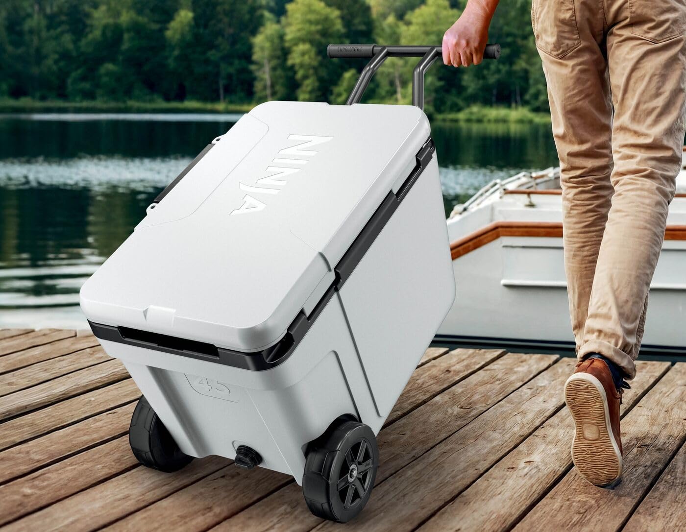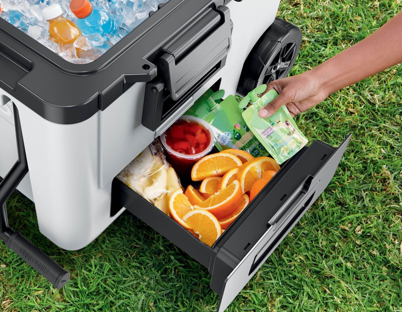 Ninja FrostVault Glacière robuste et isotherme, avec roues et tiroir de stockage à sec Dry Zone, conserve la glace plusieurs jours, capacité jusqu’à 6