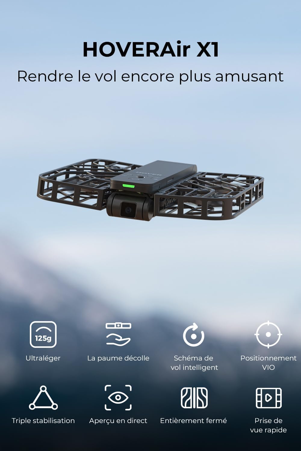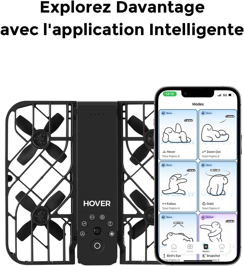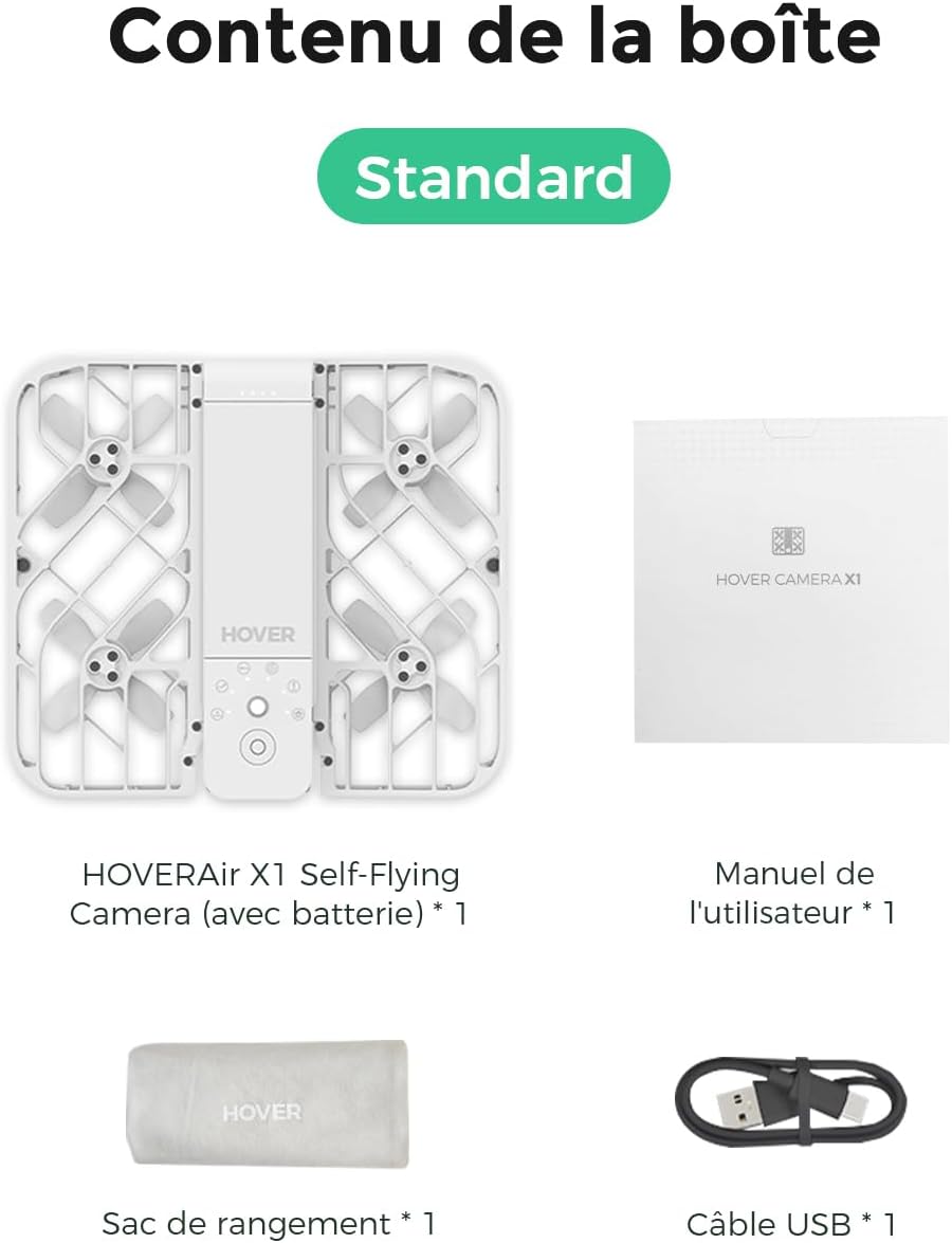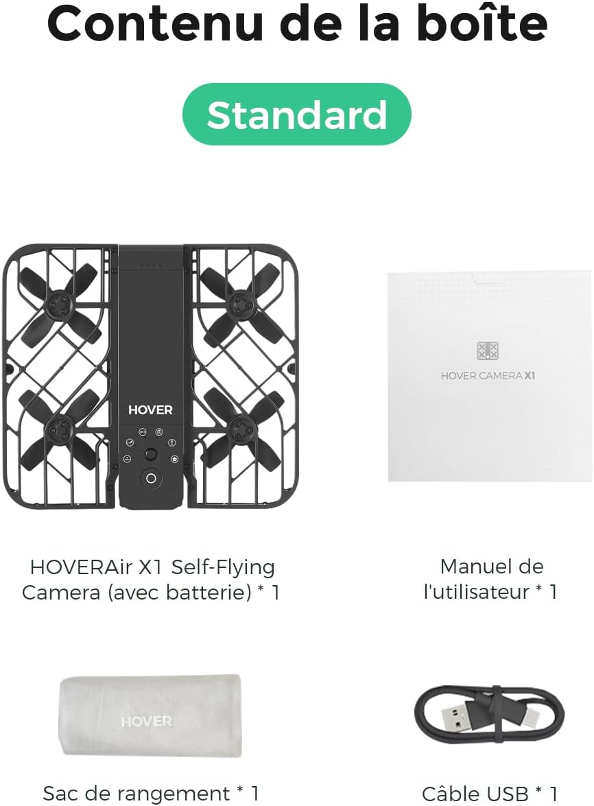 HOVERAir X1 Drone avec Camera, Drone Suivez-Moi avec Contrle Mains Libres, Mine Drone avec Vidéo HDR, Trajectoires De Vol Intelligentes, Décollage de la Paume de la Mains Libres, Noir (Standard)