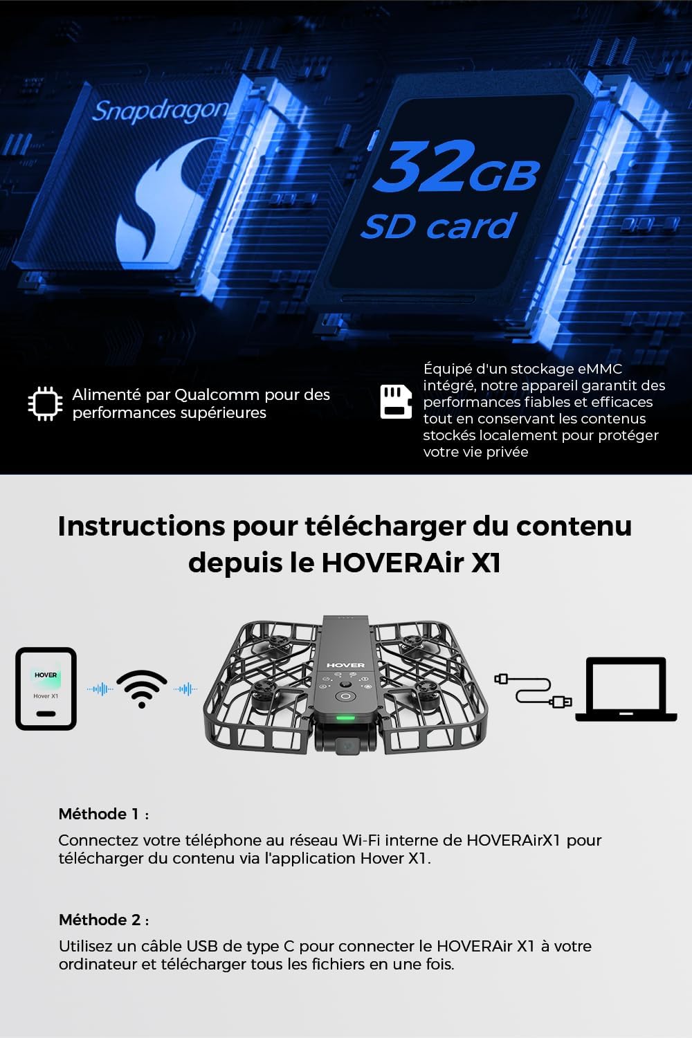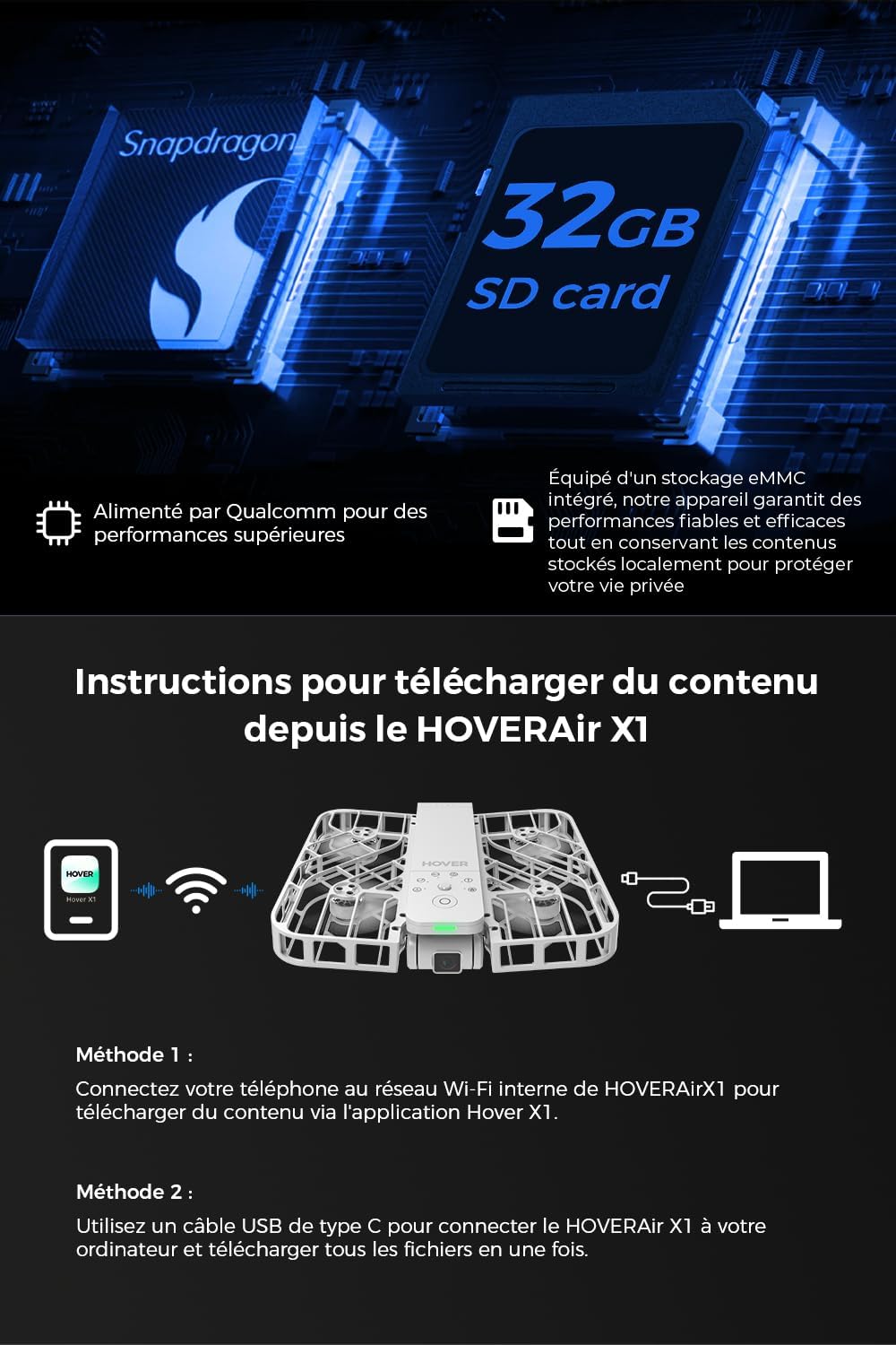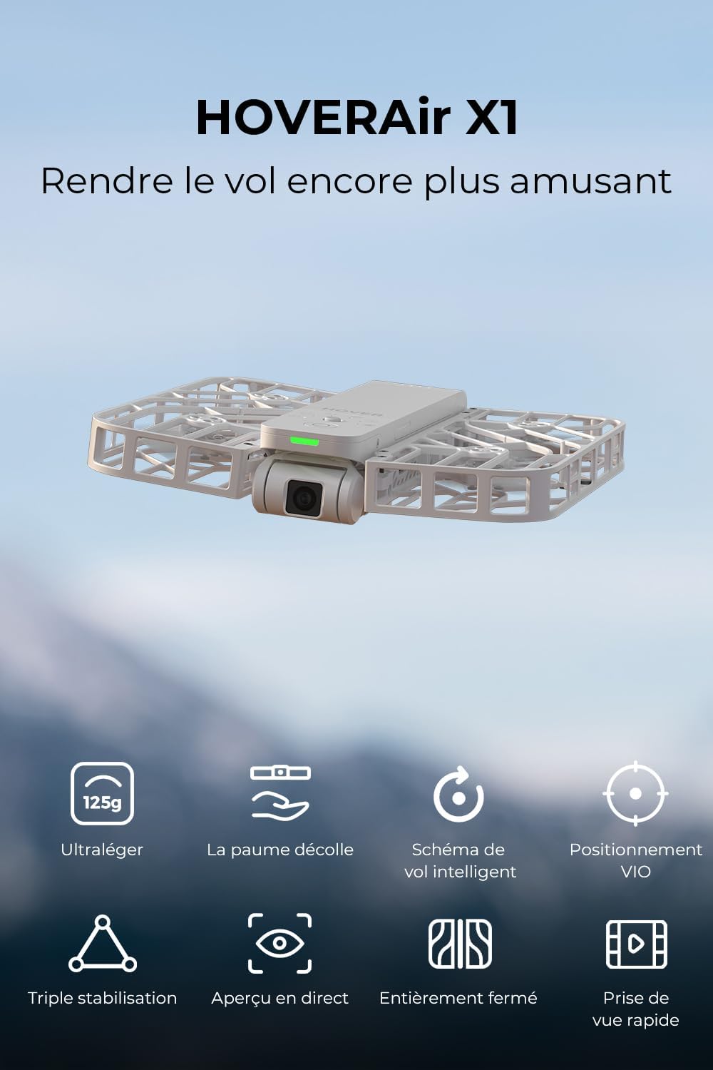 HOVERAir X1 Drone avec Camera, Drone Suivez-Moi avec Contrle Mains Libres, Mine Drone avec Vidéo HDR, Trajectoires De Vol Intelligentes, Décollage de la Paume de la Mains Libres, Noir (Standard)