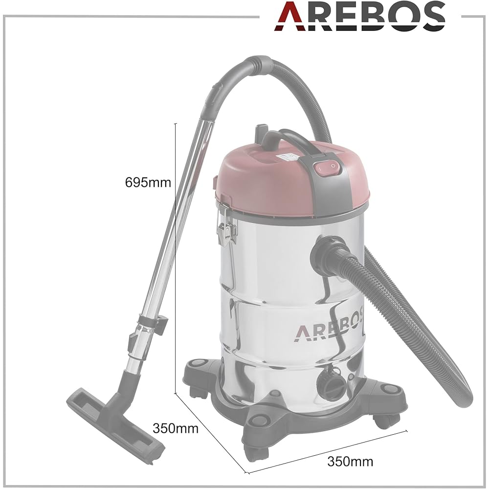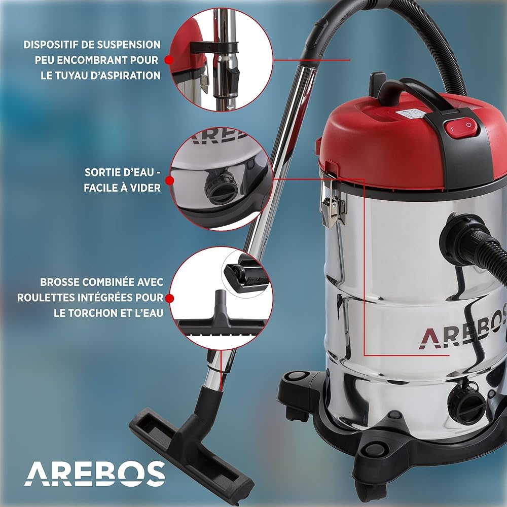 AREBOS Aspirateur Industriel | Aspirateur Sec et Humide avec Filtre | 1800W | 30L | Acier Inoxydable | Rouge : Cuisine et Maison