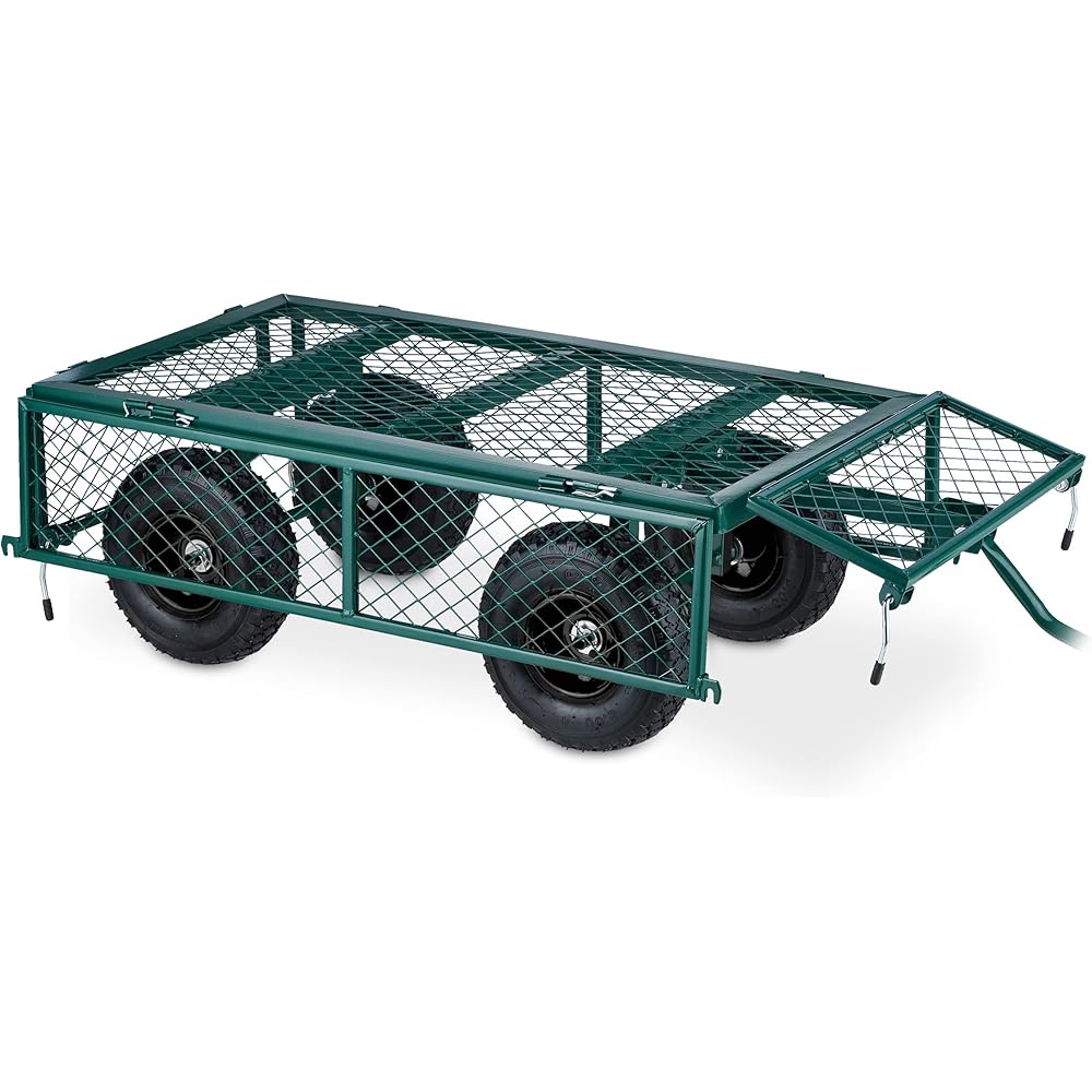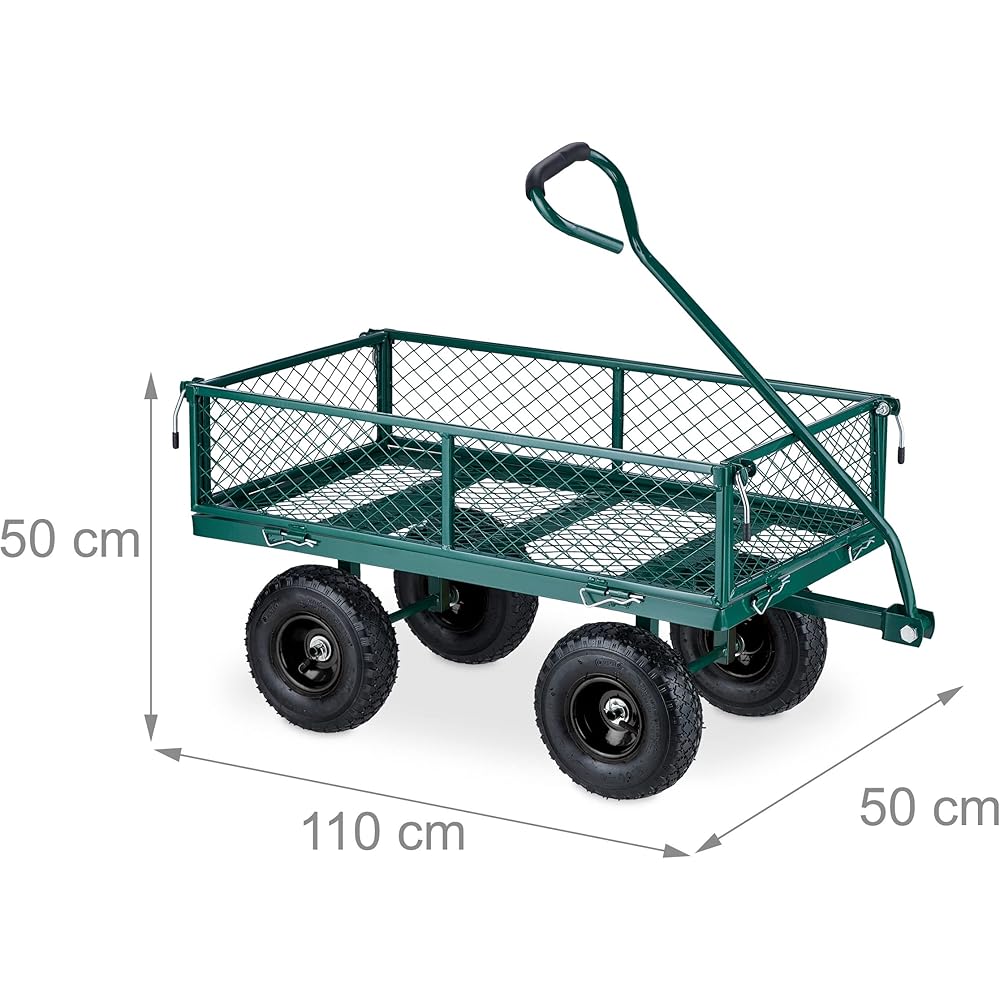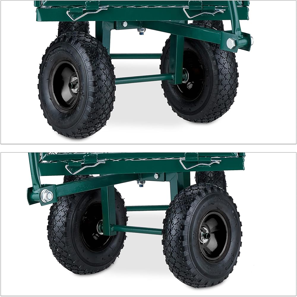 Relaxdays Chariot de Jardin Pratique, Roues pneumatiques, Parties latérales Pliables, Charge Max. 200 kg, Vert : Jardin
