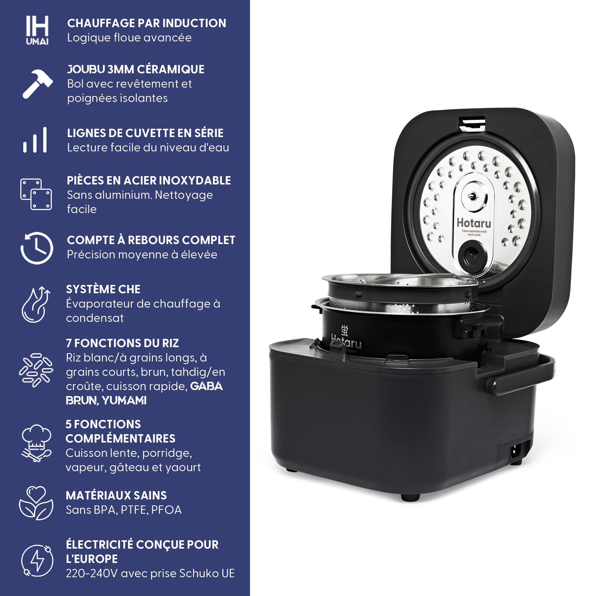 Yum Asia Hotaru Cuiseur à riz avec chauffage par induction (IH) et bol en céramique (3 tasses, 0,54 litre), 7 fonctions de cuisson du riz, 5 fonctions