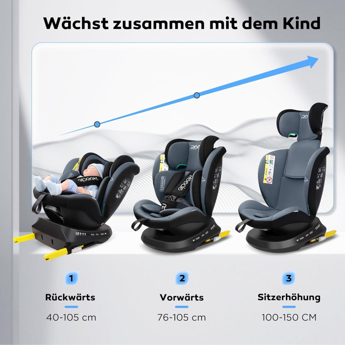Reecle 360 Drehbar i-Size Kindersitz mit ISOFIX 40-150 cm (0-36 kg) Reboarder, ab Geburt -12 Jahre, ECE R129