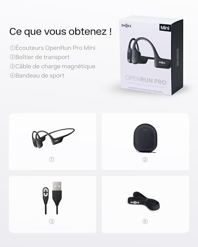 SHOKZ OpenRun Pro Mini Casque à Conduction osseuse, écouteurs Bluetooth Oreilles Libres pour Le Sport avec Micro, Casque sans Fil étanche IP55, 10H d’autonomie, Bandeau de Sport, Noir