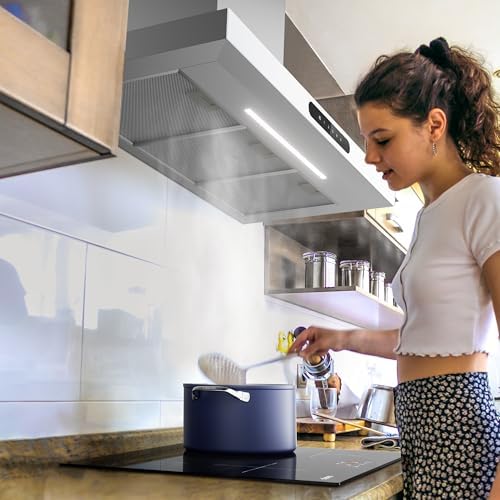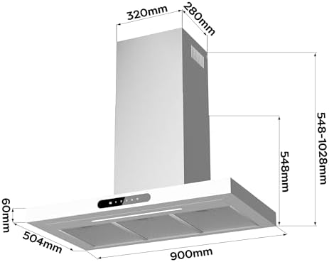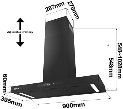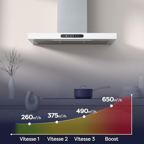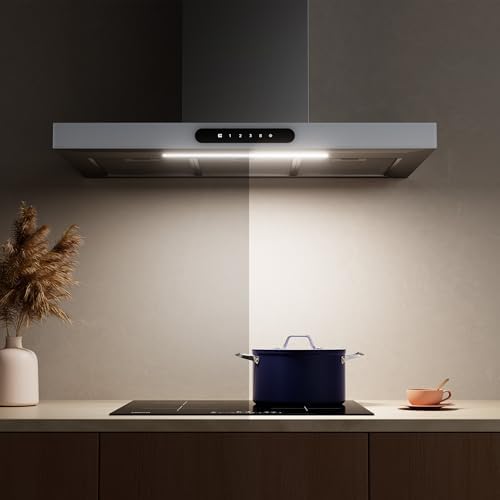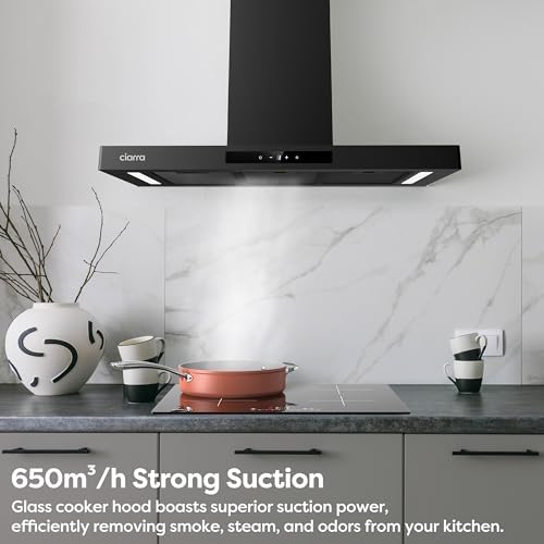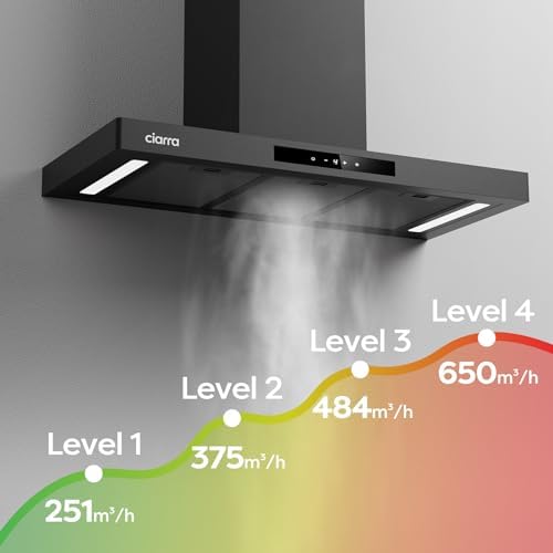 Ciarra Hotte Aspirante 90cm Silencieuse A 650m³/h 4 Vitesses et Boost Commande Tactile et Wi Fi Filtre à Charbon Inclus Coins Arrondis CBCB9102 P : Gros électroménager