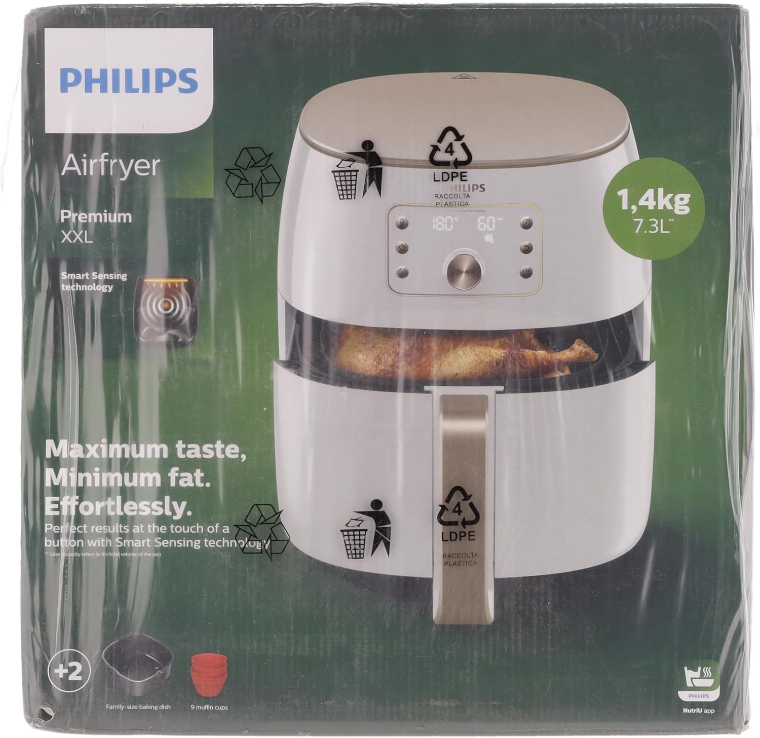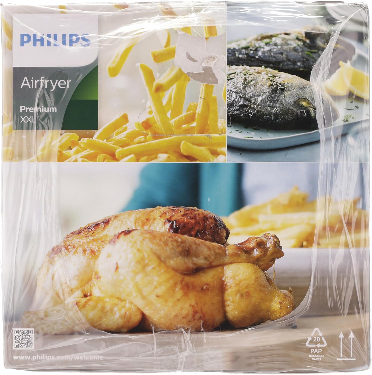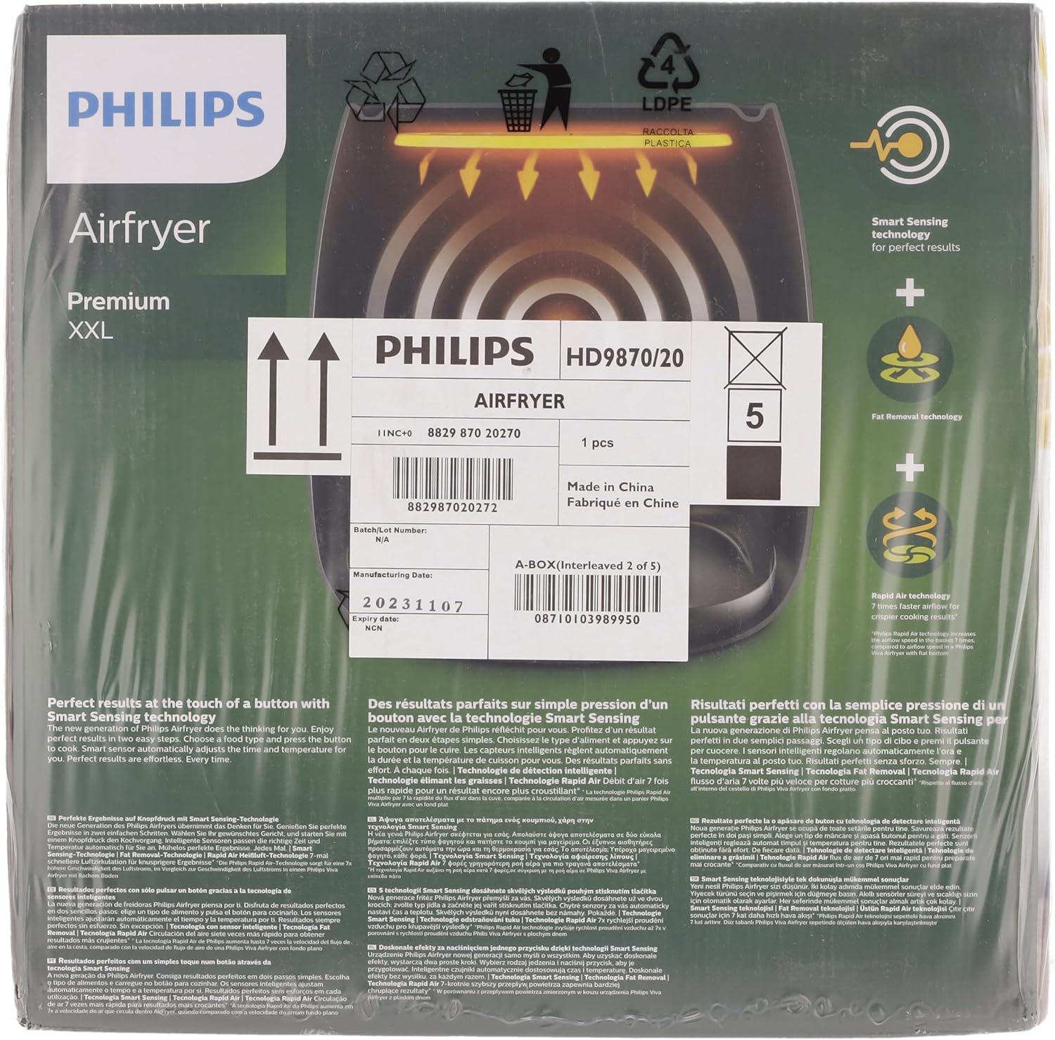 Philips Premium XXL Airfryer sans huile, Smart Sensing, 2225 W, technologie d'élimination des graisses, Rapid Air, 43,3 x 32,1 x 31,5 cm, Plastique, blanc, HD9870/20
