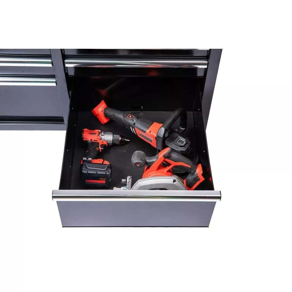 46 Zoll B x 24 Zoll T, tiefer Werkzeugkasten mit 9 Schubladen, glänzend schwarz, mobile Werkbank