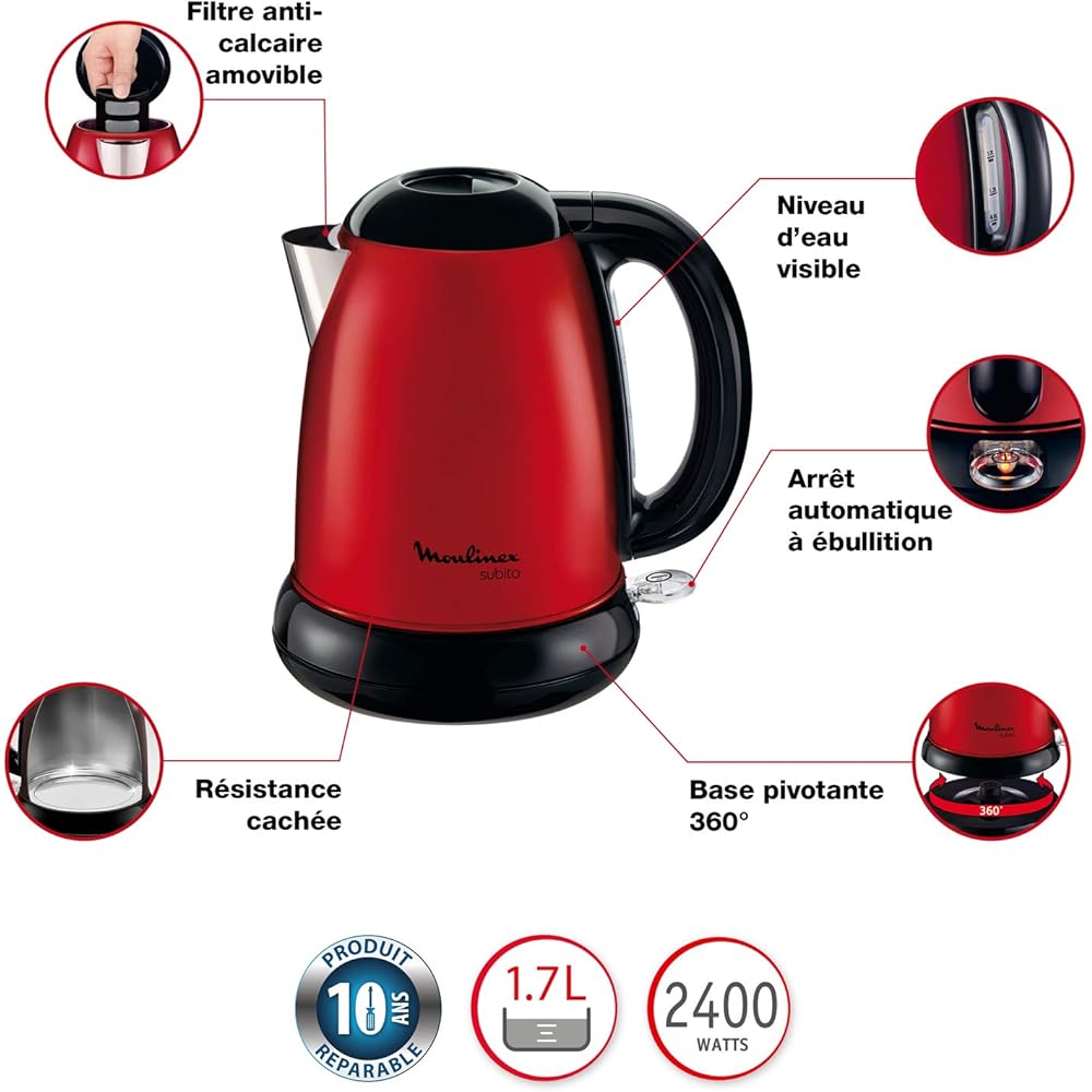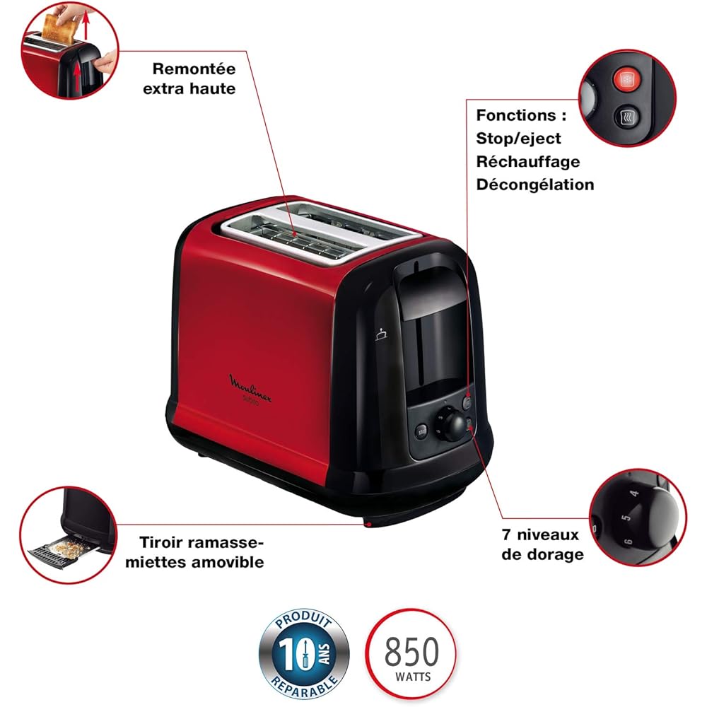 Moulinex LT260D11 Grille-Pain Toaster Subito 2 Fentes Décongélation Réchauffage Thermostat Réglable Rouge Inox 850W + BY540510 Bouilloire Électrique sans Fil Subito Rouge Inox 1,7 L 2400W : Cuisine et Maison