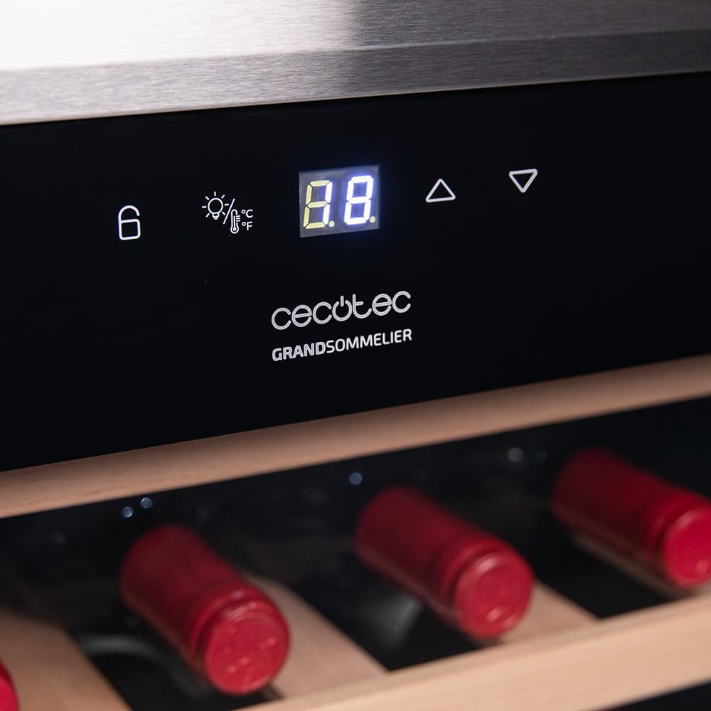 Cecotec Cave à vin 34 bouteilles Bolero grandsommelier 34030 inox compressor, 80 L, Refroidissement par compresseur, Température réglable de 5 à 18°C, Commande tactile, Affichage, LED intérieur