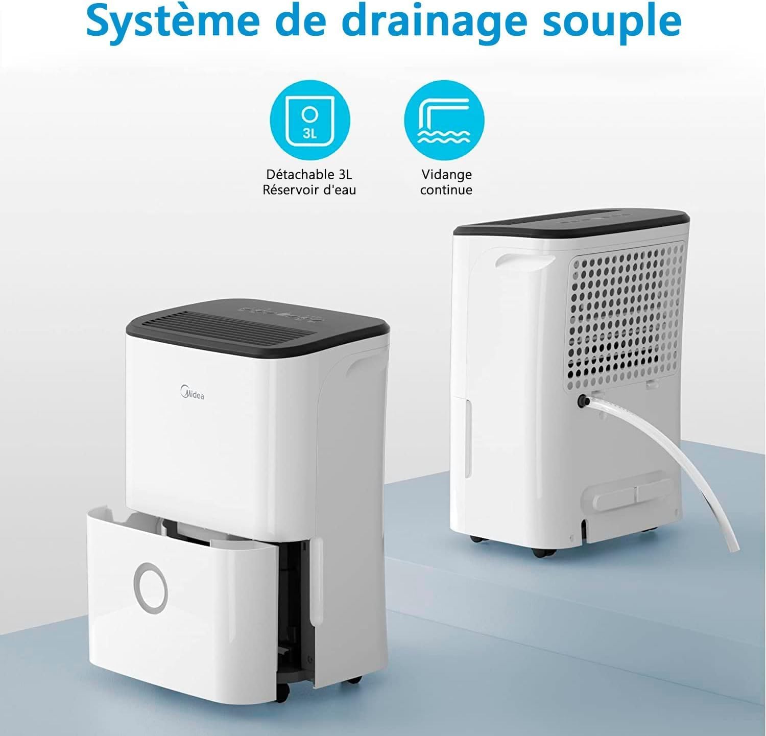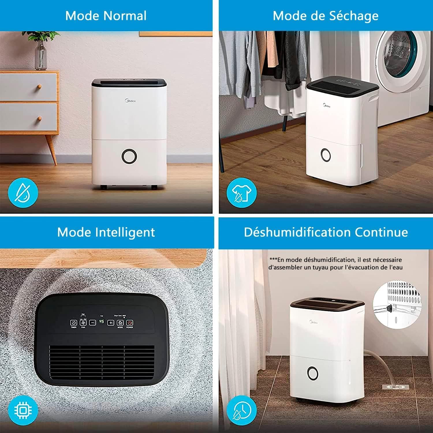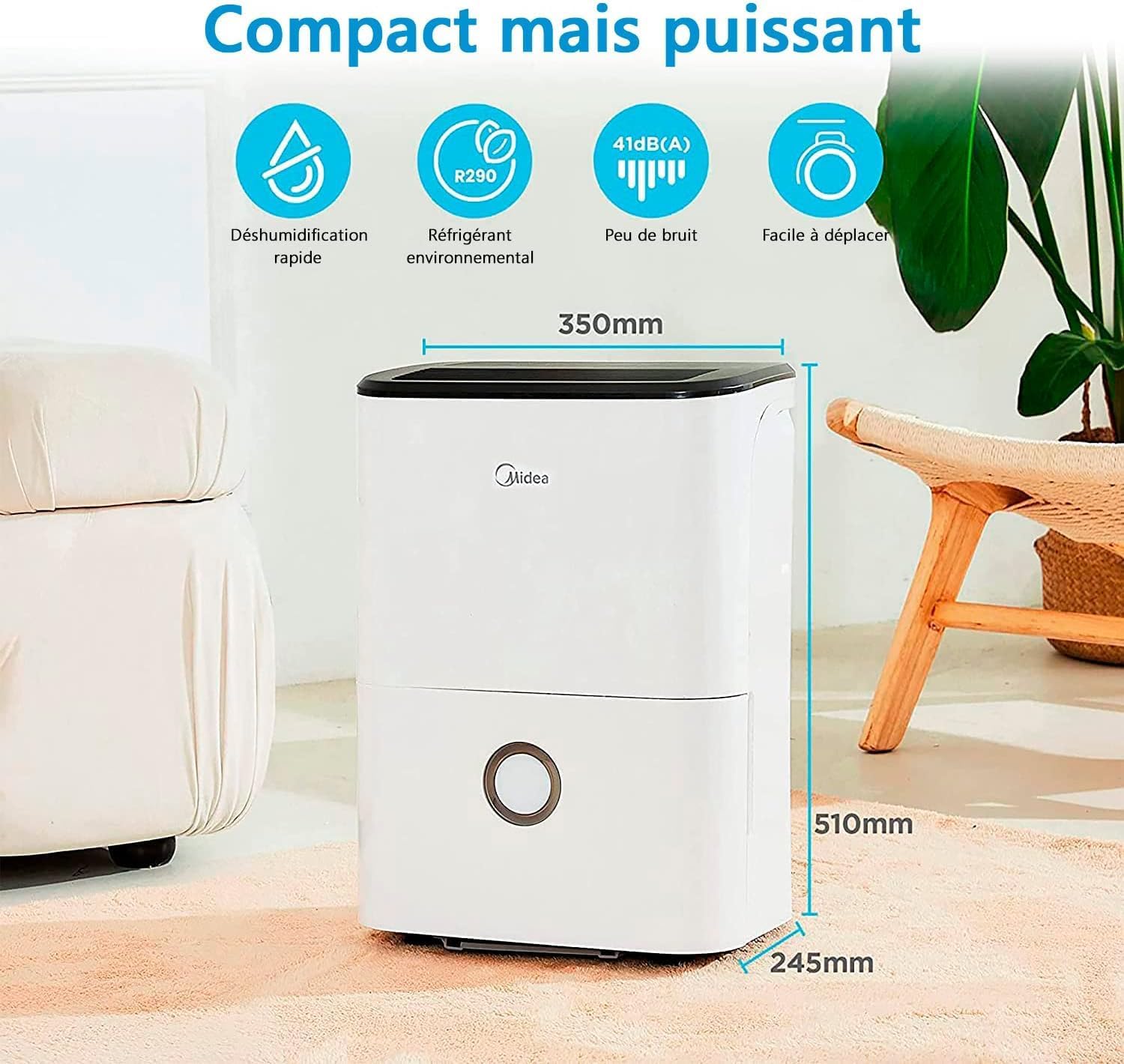 MIDEA Deshumidificateur d air electrique 20L - Adsorbeur d'humidité pour la maison, salle de bain, cave et garage - Surface de travail 40 m2 - Déshumidificateurs Anti Moisissures et Anti Humidité