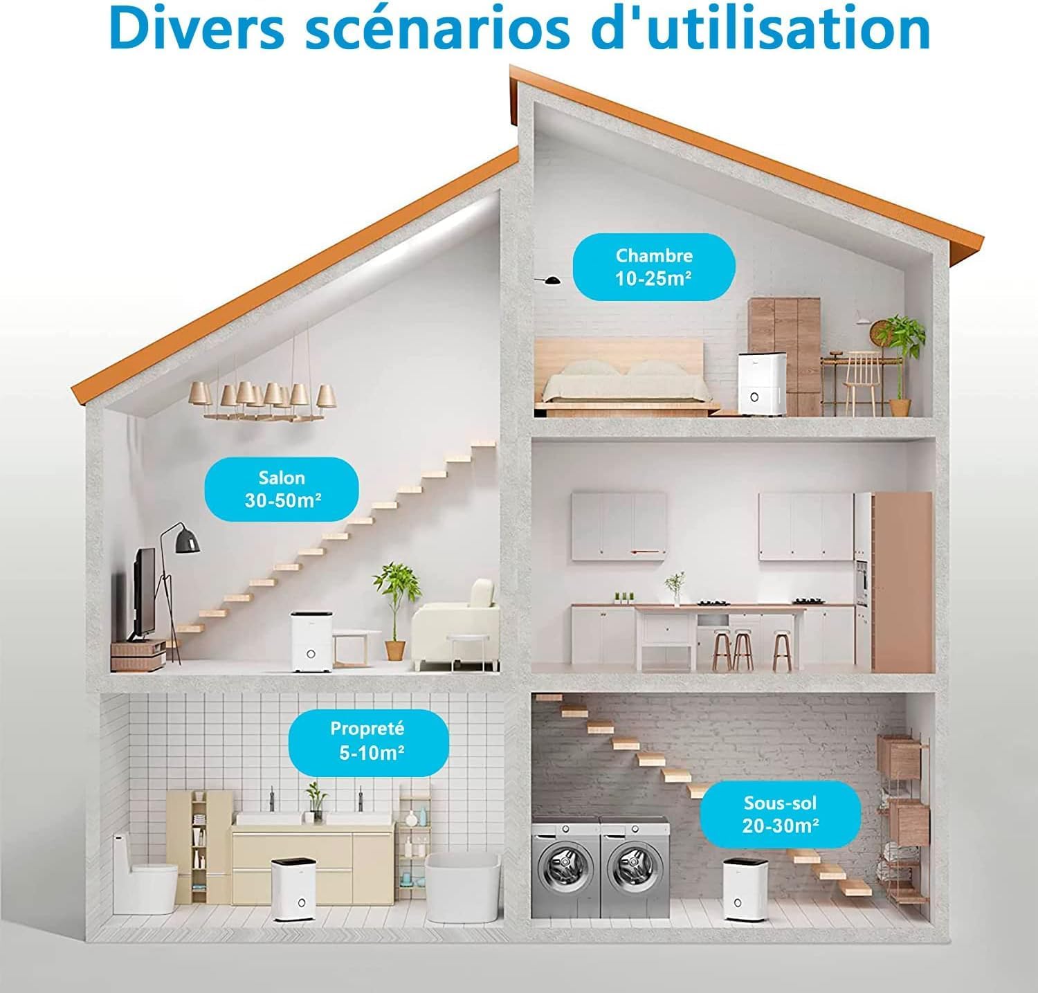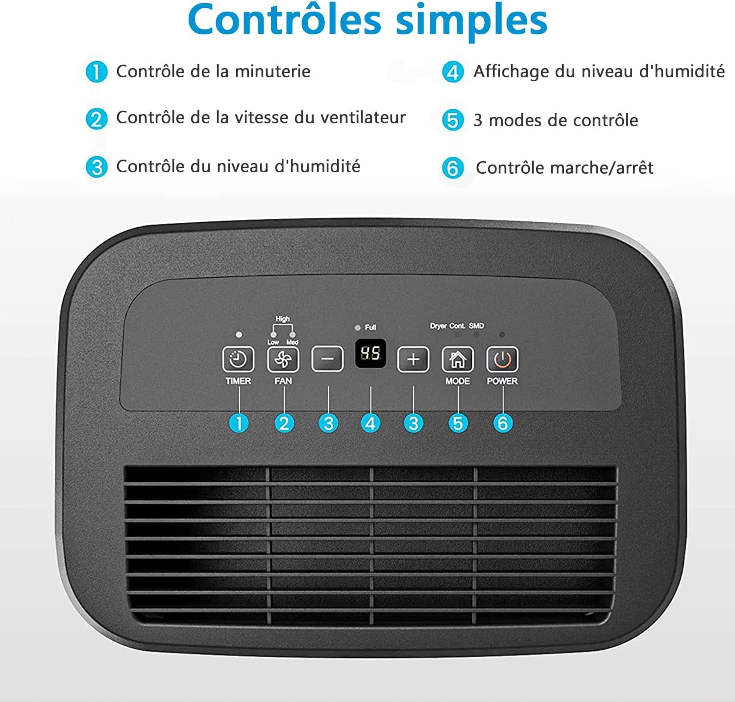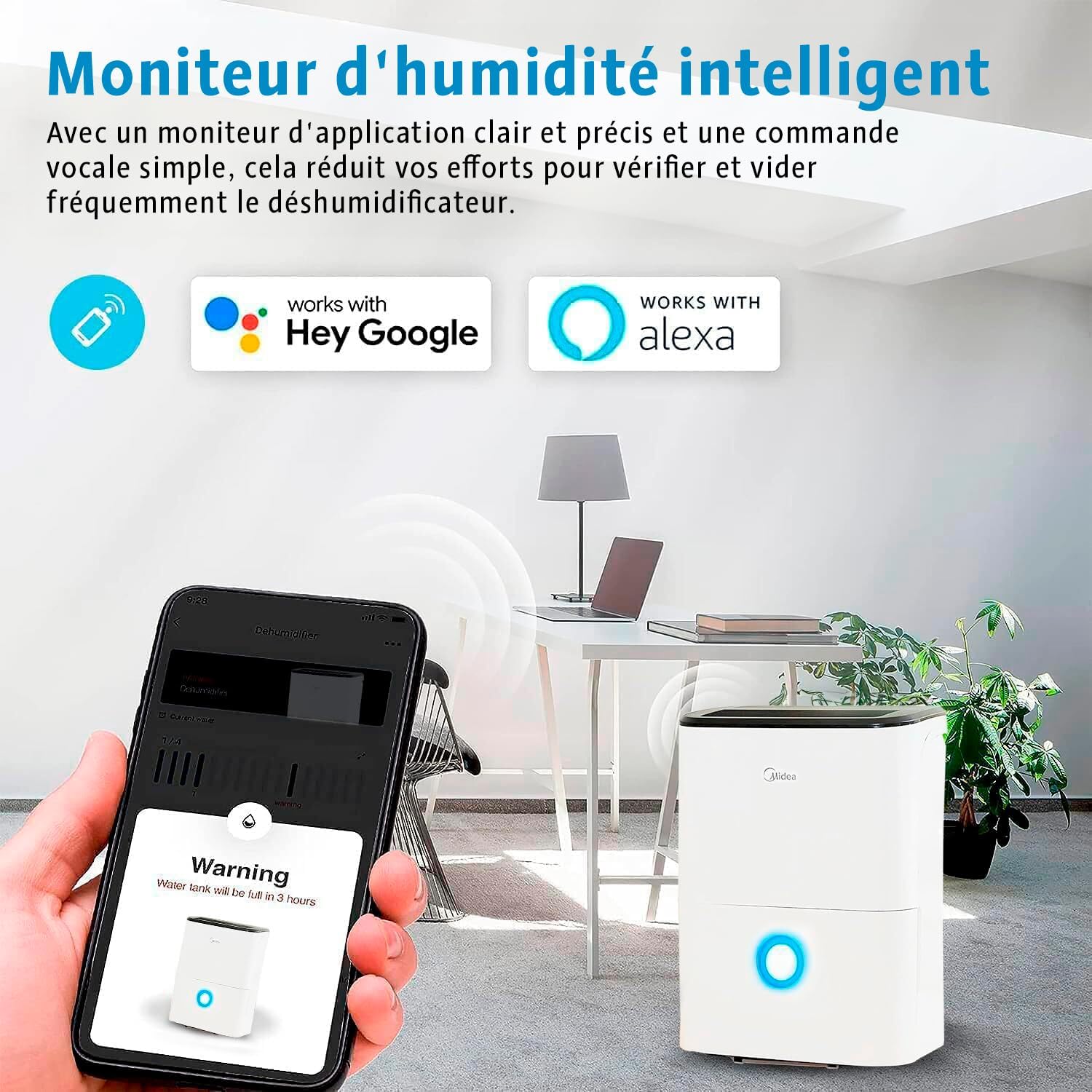 MIDEA Deshumidificateur d air electrique 20L - Adsorbeur d'humidité pour la maison, salle de bain, cave et garage - Surface de travail 40 m2 - Déshumidificateurs Anti Moisissures et Anti Humidité