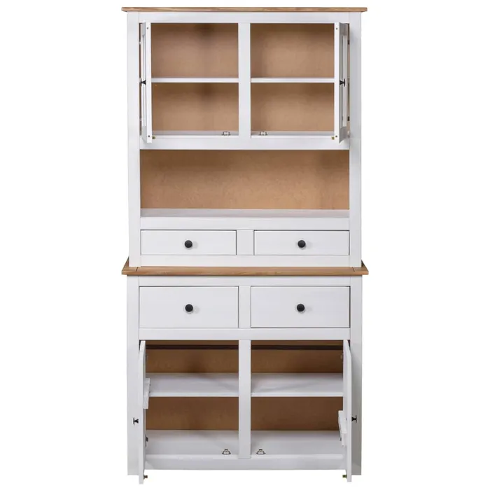 Buffet Haut Blanc 93x40,5x180 Cm Pin Gamme Panama Vaisselier et vitrine