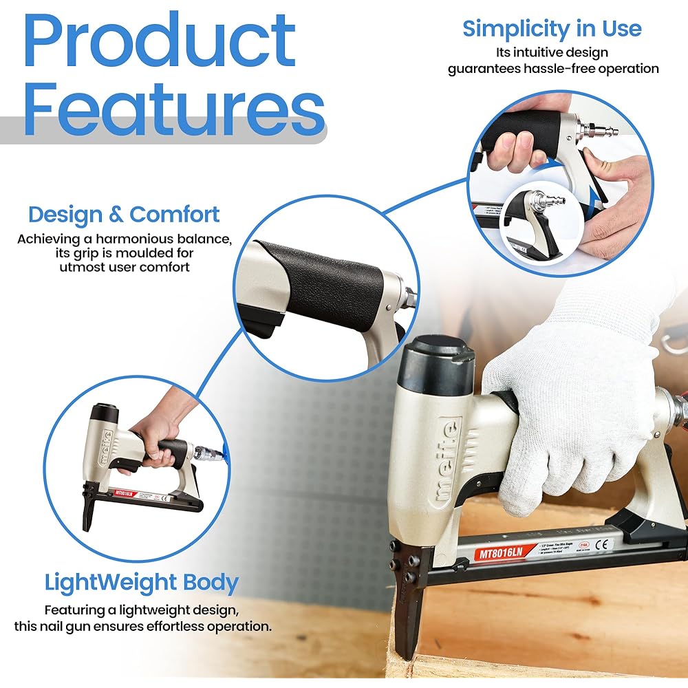 meite MT8016LN Agrafeuse Pneumatique Type 80 Agrafeuse Tapissier Bec Long – Agrafeuse à Air pour Menuiserie et Fabrication de Meubles, Compatible avec type 80/6 mm à 16 mm agrafes : Bricolage