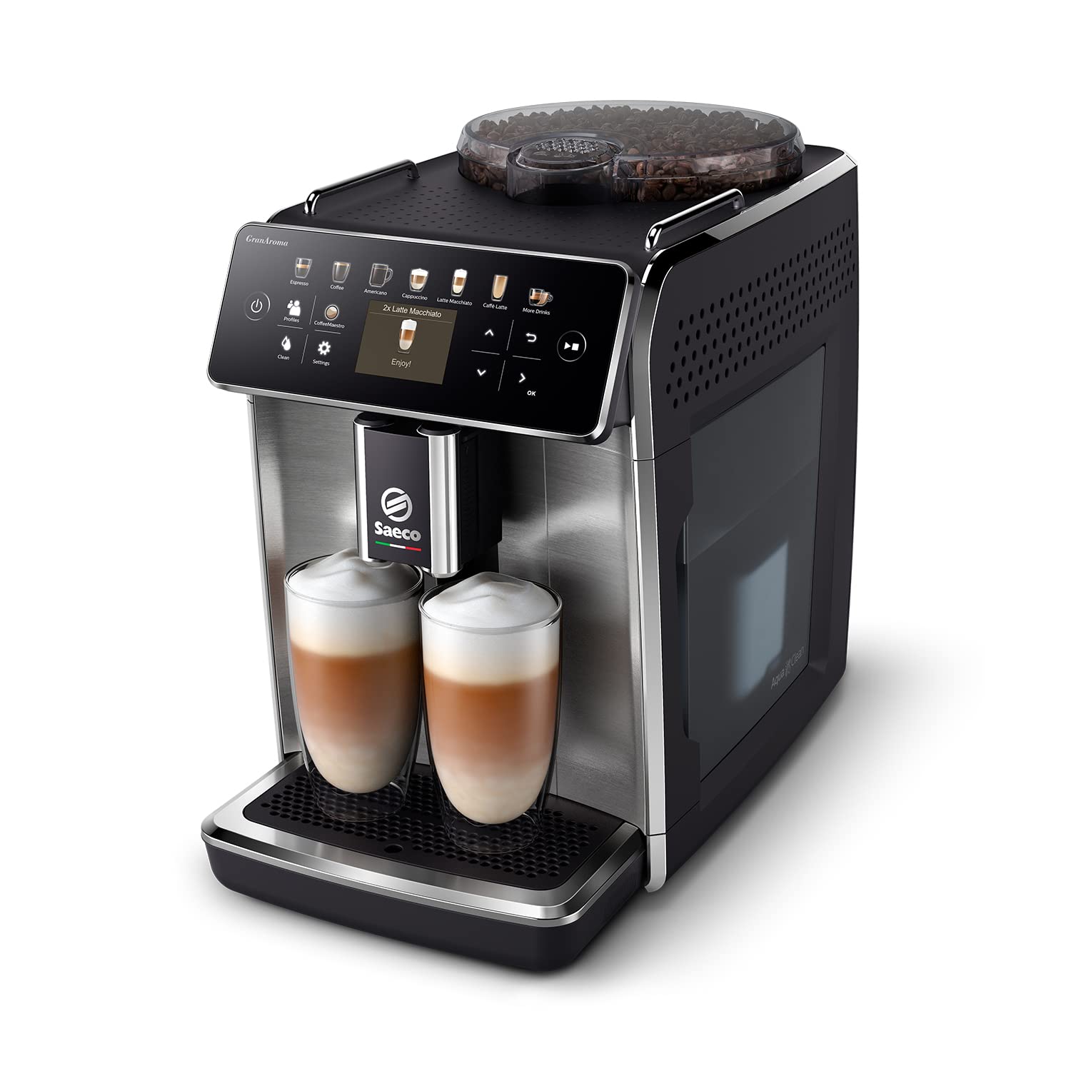 Saeco GranAroma Machine Expresso - Café à Grain - 16 Spécialités de Café, Écran Couleur Intuitif, 4 Profils Utilisateur, Broyeur en Céramique (SM6585/