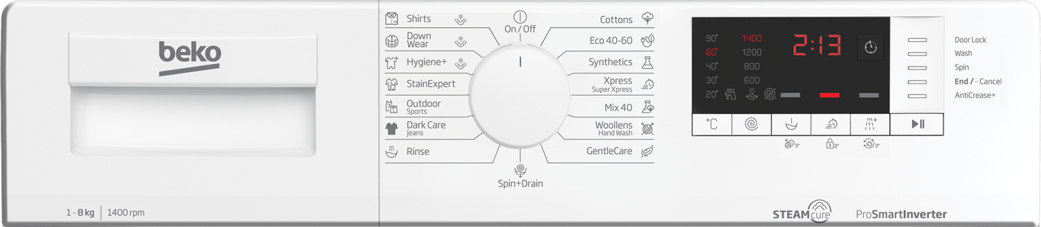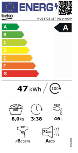 Lave-linge hublot Beko Lave-Linge Hublot Wue8726Xst - 8 Kg - Induction - L60Cm - 1400 Trs/Min - Classe A - Blanc