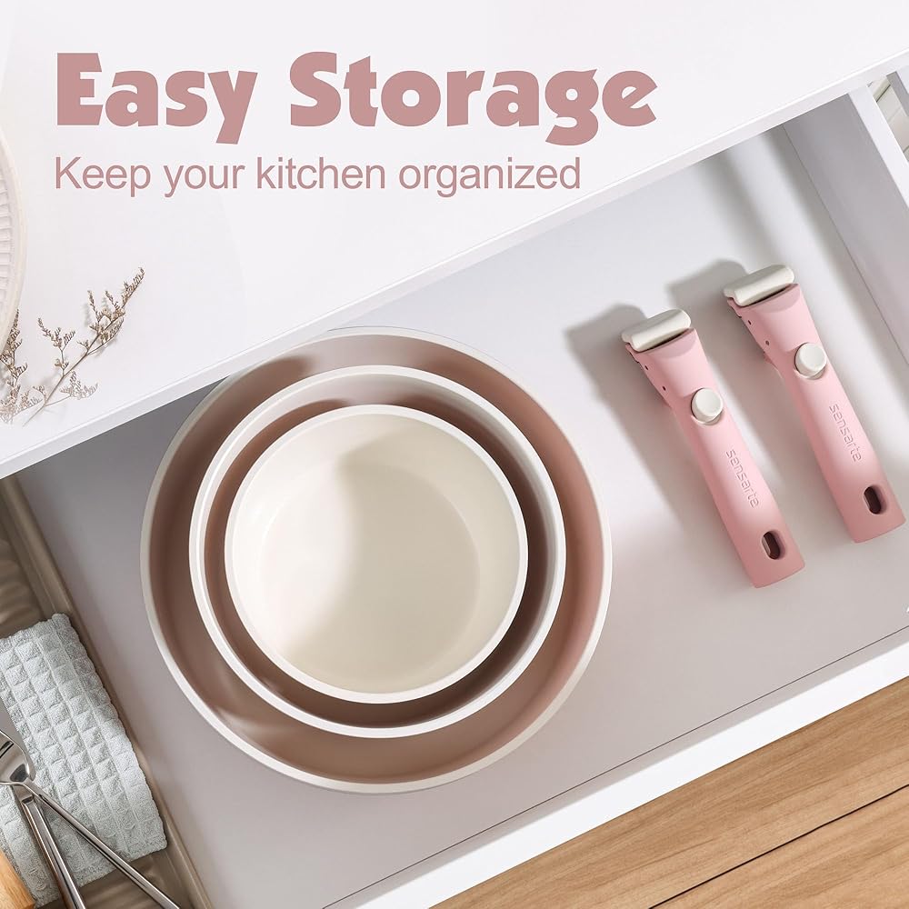 SENSARTE 17 Pièces Lot Poele et Casserole Induction, Revêtement Céramique Antiadhésif, Batterie de Cuisine avec Couvercle, Poignées Amovibles,Empilable, Compatible Lave-vaisselle, Sans PFOA et PFAS : Cuisine et Maison