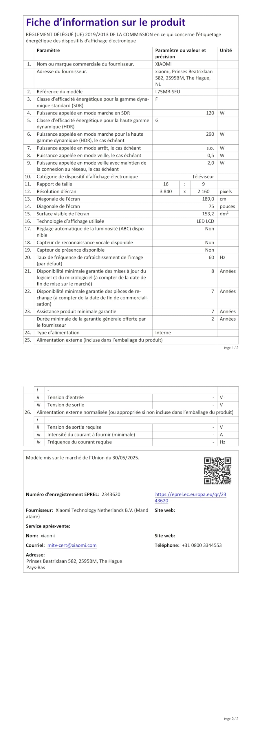 XIAOMI TV S Pro Mini LED 75, Smart TV, Dolby Vision, Dolby Atmos, QLED 4K, 144Hz, Google TV, HDR10+, Triple Tuner, DVB T2, MEMC, DTS-X, Harman AudioEF