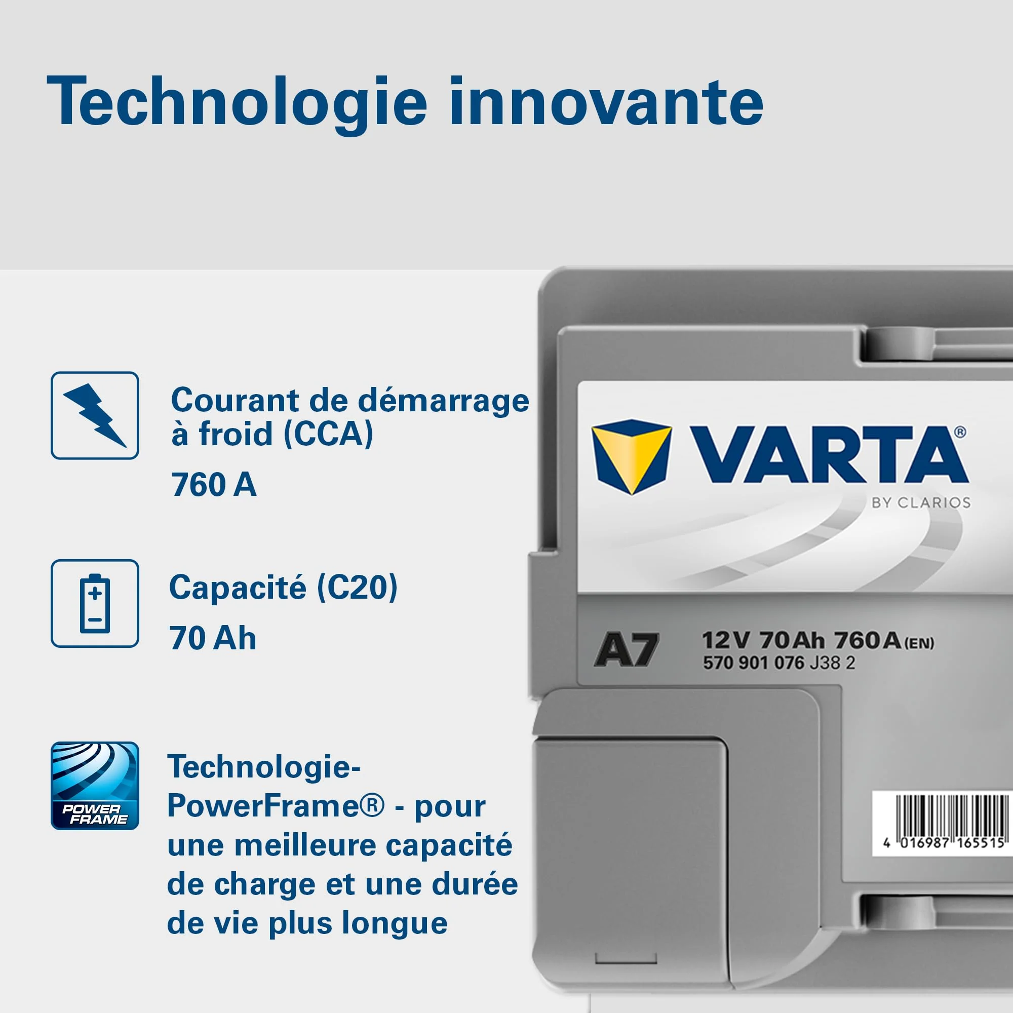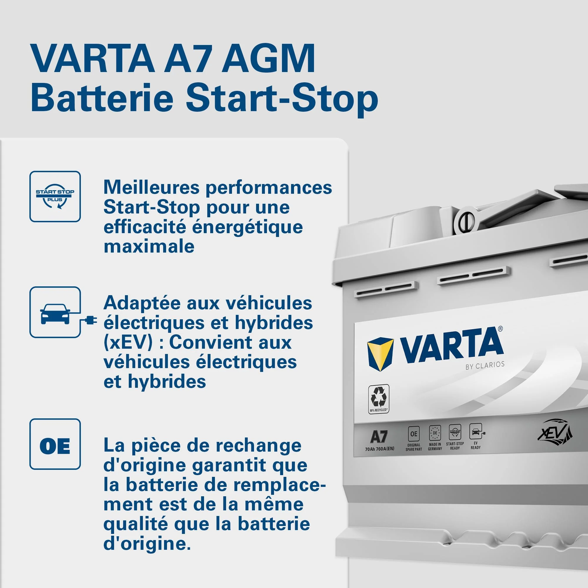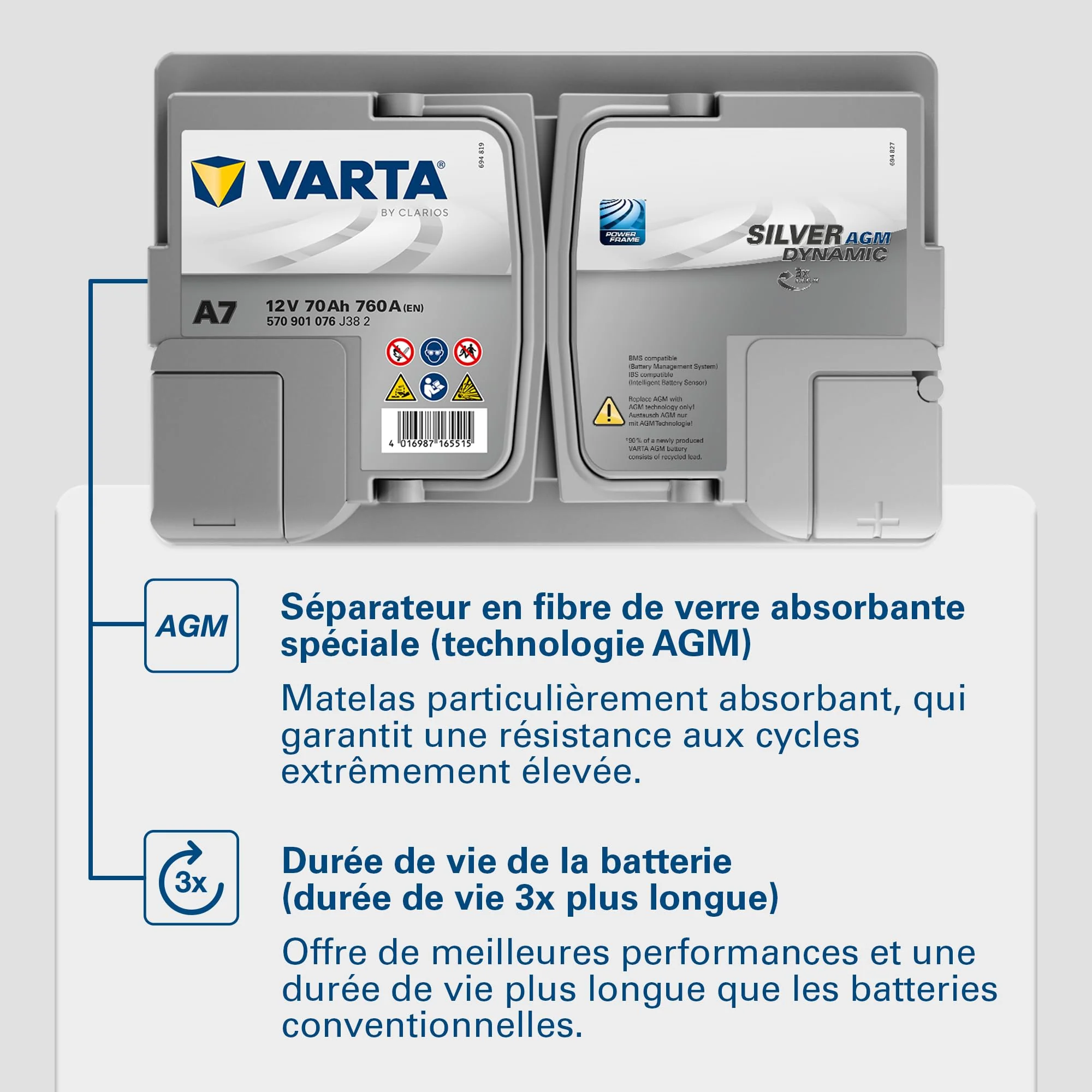 Batterie de démarrage XEV Varta Silver Dynamic AGM L3 A7 12V 70Ah / 760A 570901076