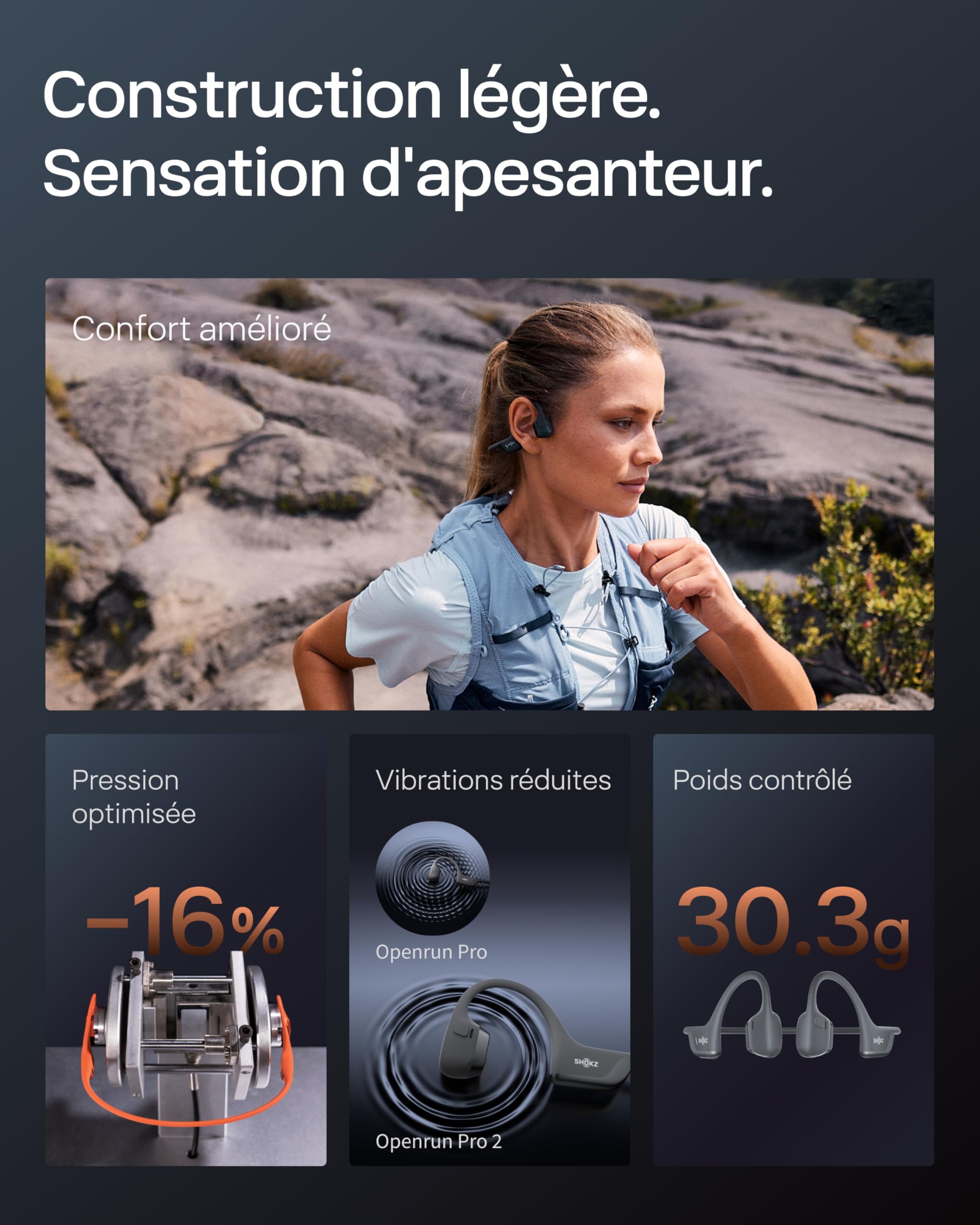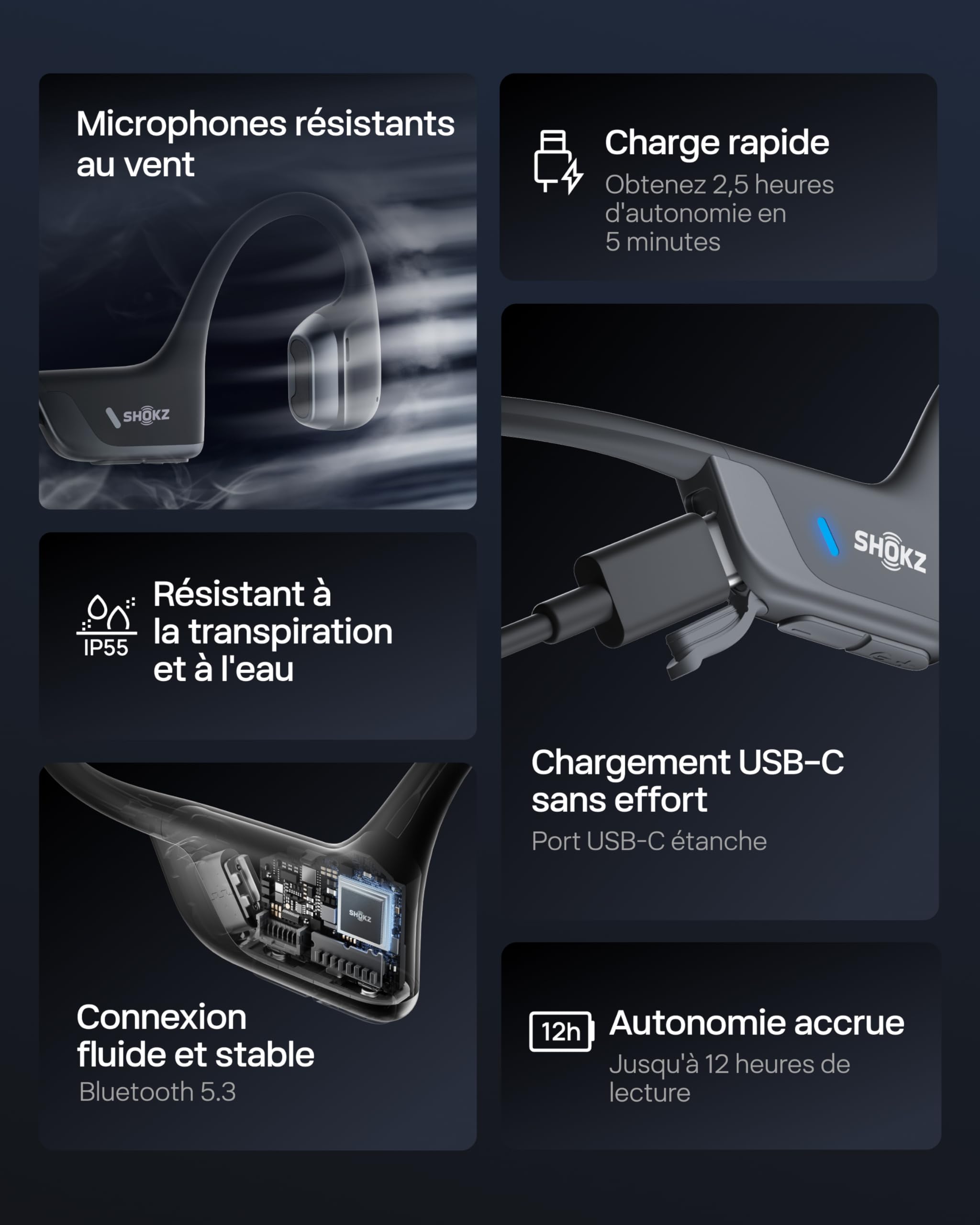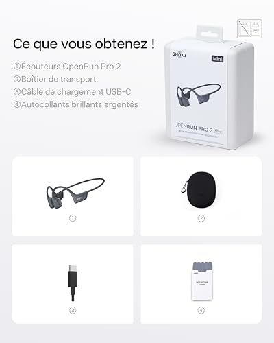 SHOKZ Casque à Conduction Osseuse OpenRun Pro 2 Mini, Écouteurs sans Fil Bluetooth 5.3, Microphones Réducteurs de Bruit, Étanchéité IP55, 12h d’Autonomie, Charge Rapide USB-C, Noir