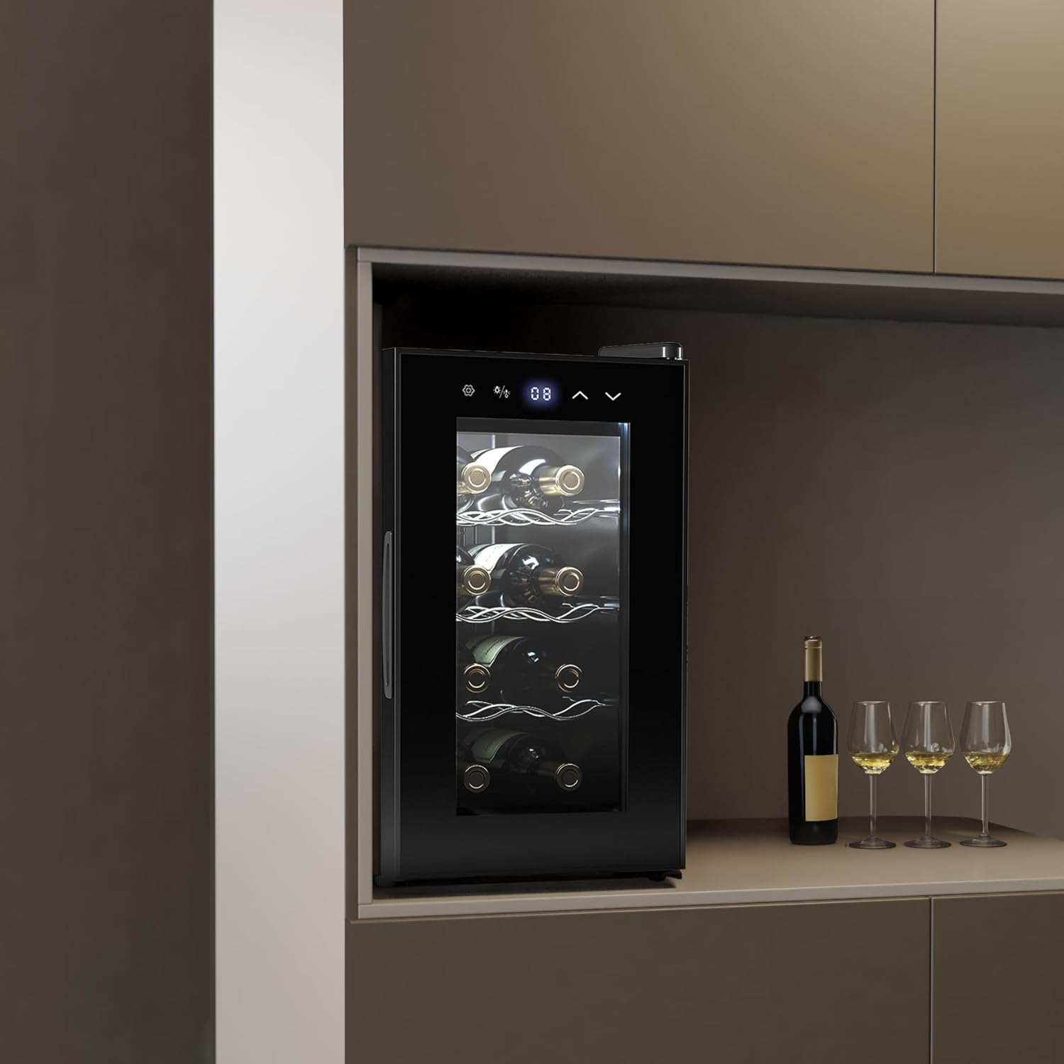 Cecotec Cave à vin 8 bouteilles Bolero Grandsommelier 830 coolcrystal, Refroidissement thermoélectrique, Température réglable entre 8 et 18°C, Commande tactile et affichage, Gaz non nocif.
