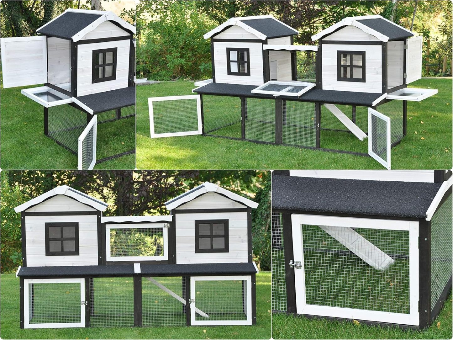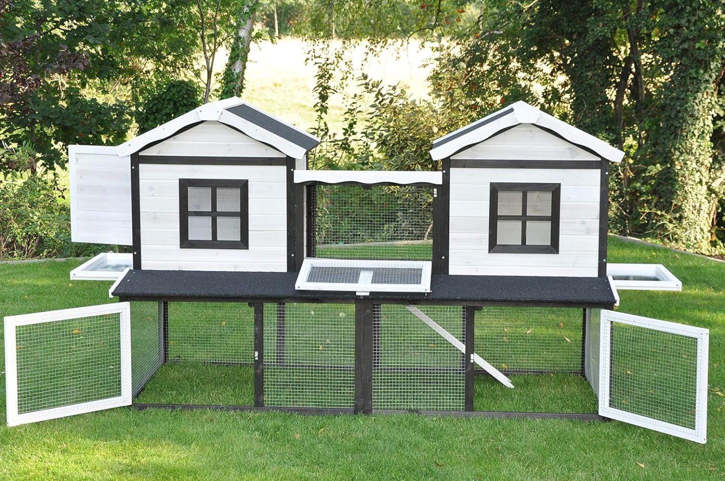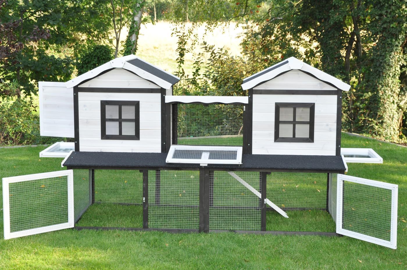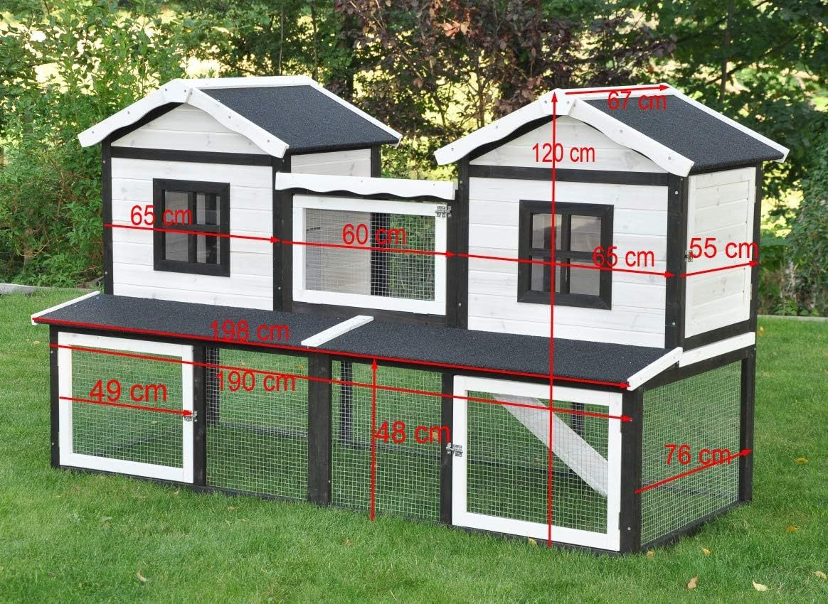 nanook Premium Hasenstall Kleintierstall Kaninchenstall XXL groß artgerecht mit Freilauf Gehege ideal für draußen 197 x 85 x 112 cm - braun weiß - 2 Ebenen
