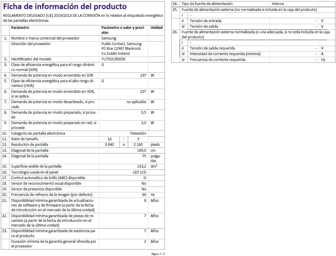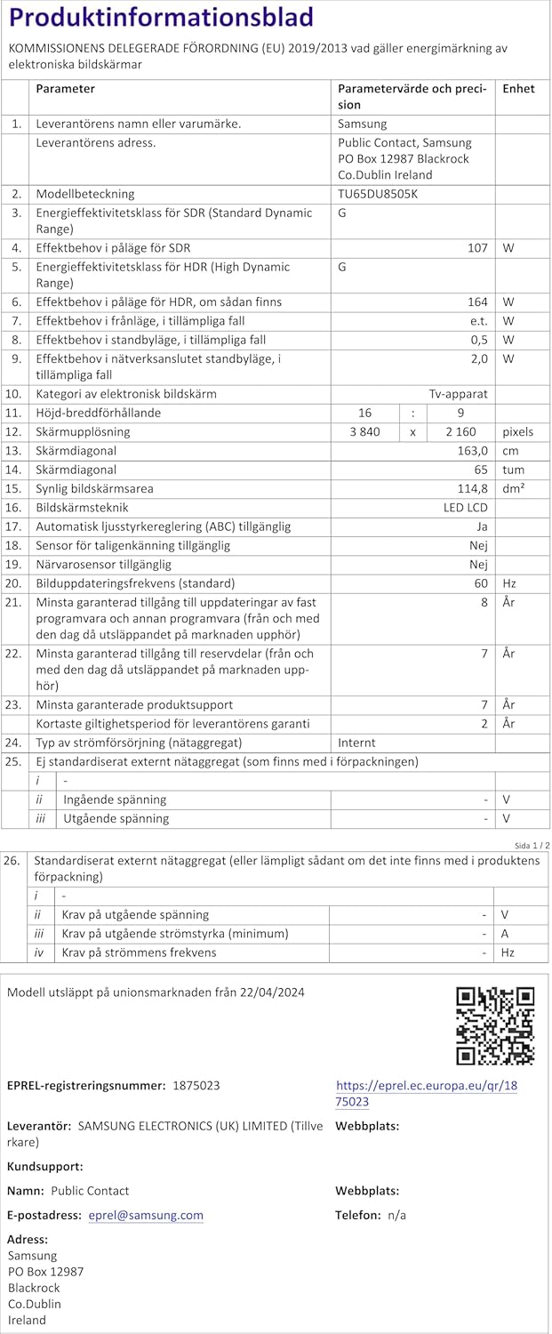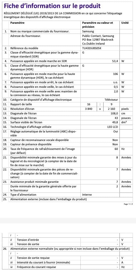 Samsung Téléviseur TU43DU8505 43" (43 Pouces) Crystal UHD 4K Smart TV 2024 [Classe énergétique G]