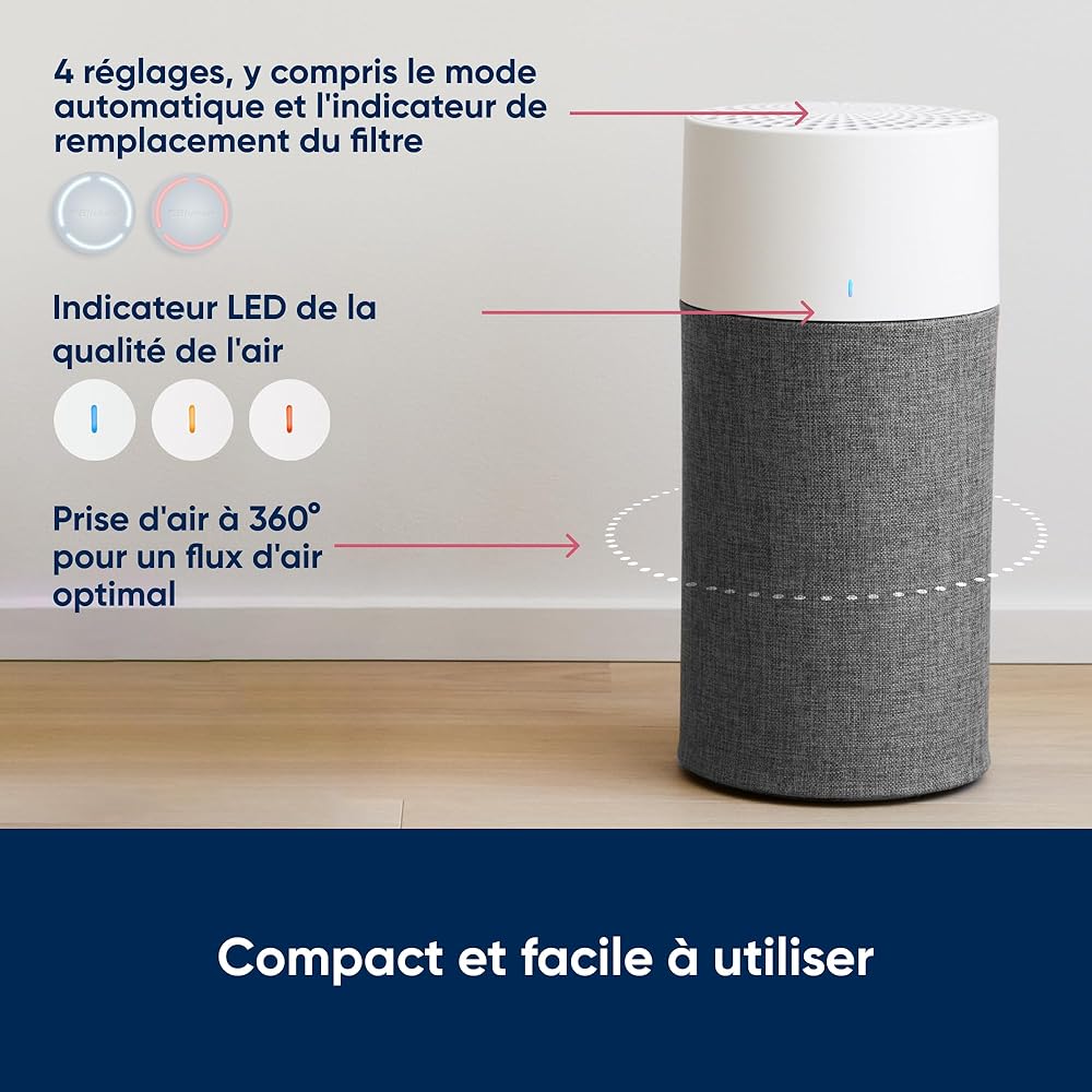 BLUEAIR Purificateur d'air Blueair Blue Pure 3210, purificateur filtre à air auto HEPA Silent™, système de filtration pour purifier jusqu'à 41 m2, gris : Cuisine et Maison