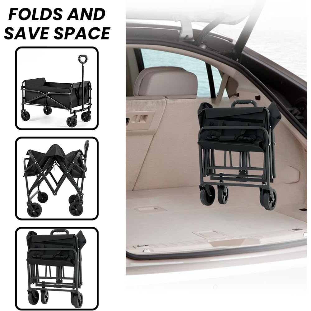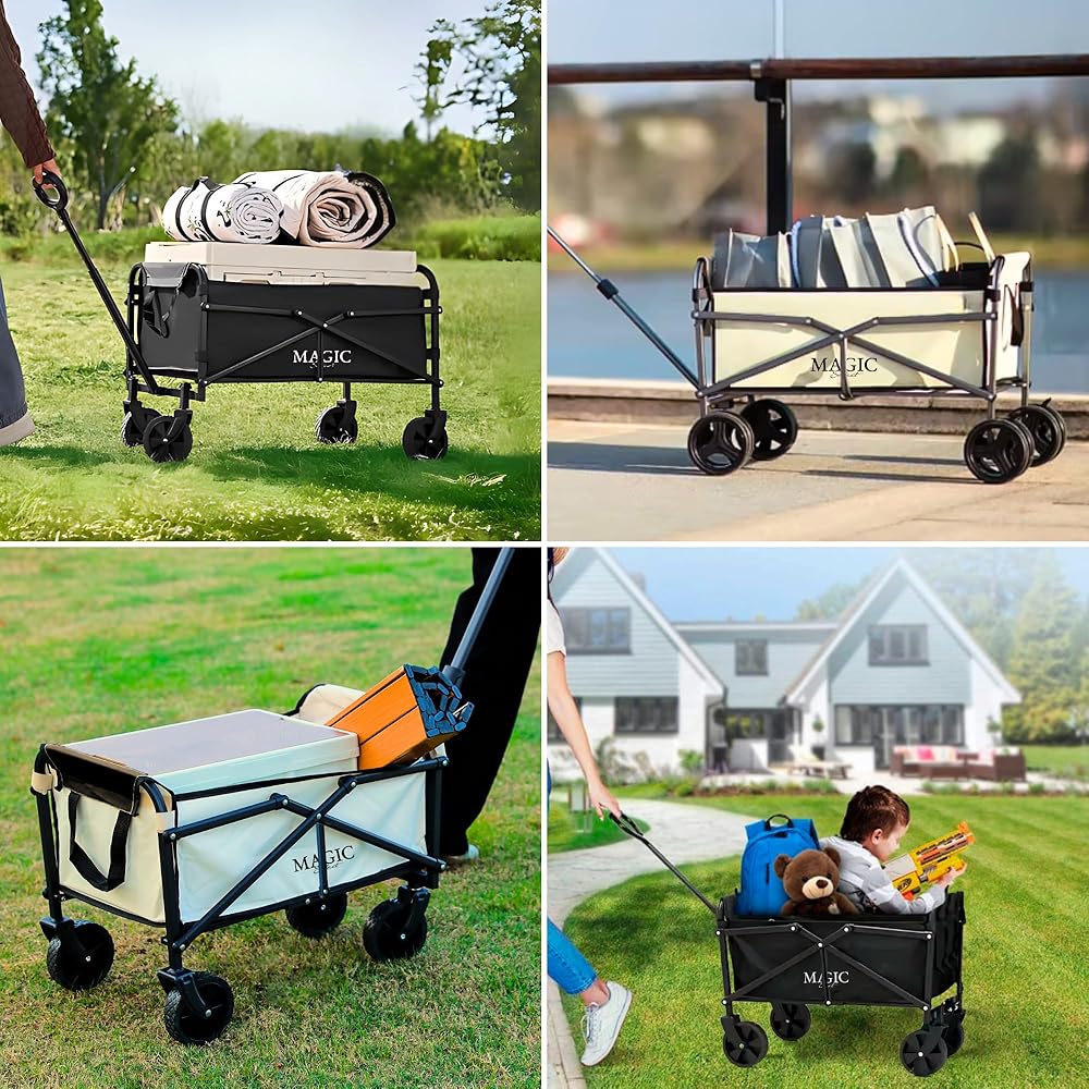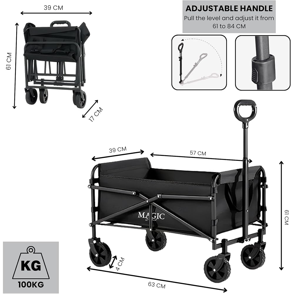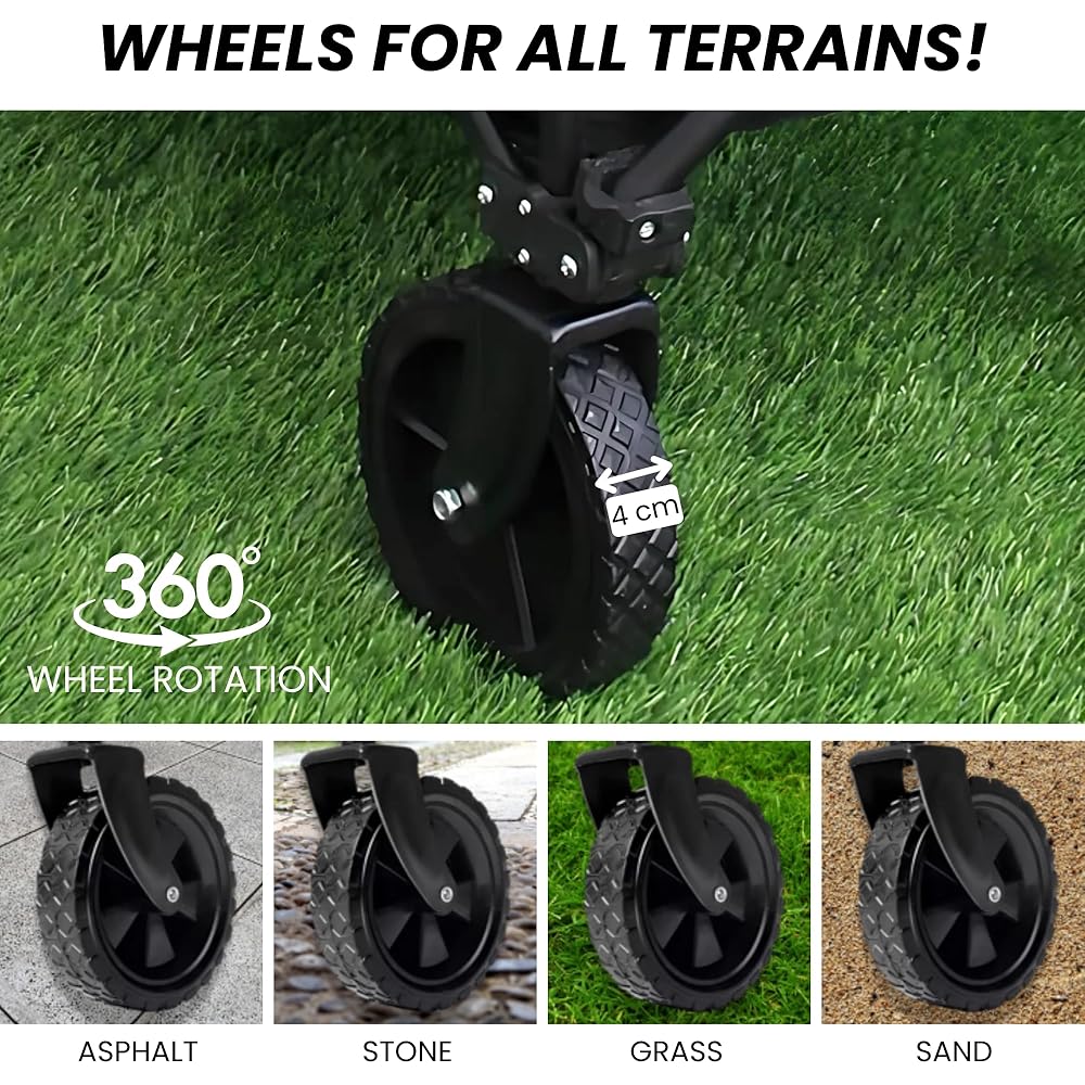 Chariot de Plage Pliable pour Le Camping, Le Pique-Nique. Chariot de Jardin. Chariot de Transport avec Sac et Poignée Réglable. Brouette : Cuisine et Maison