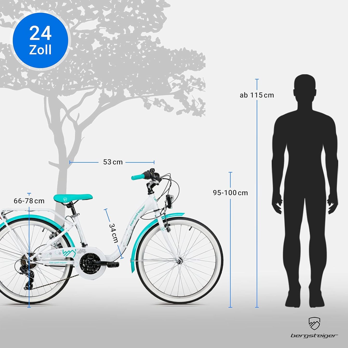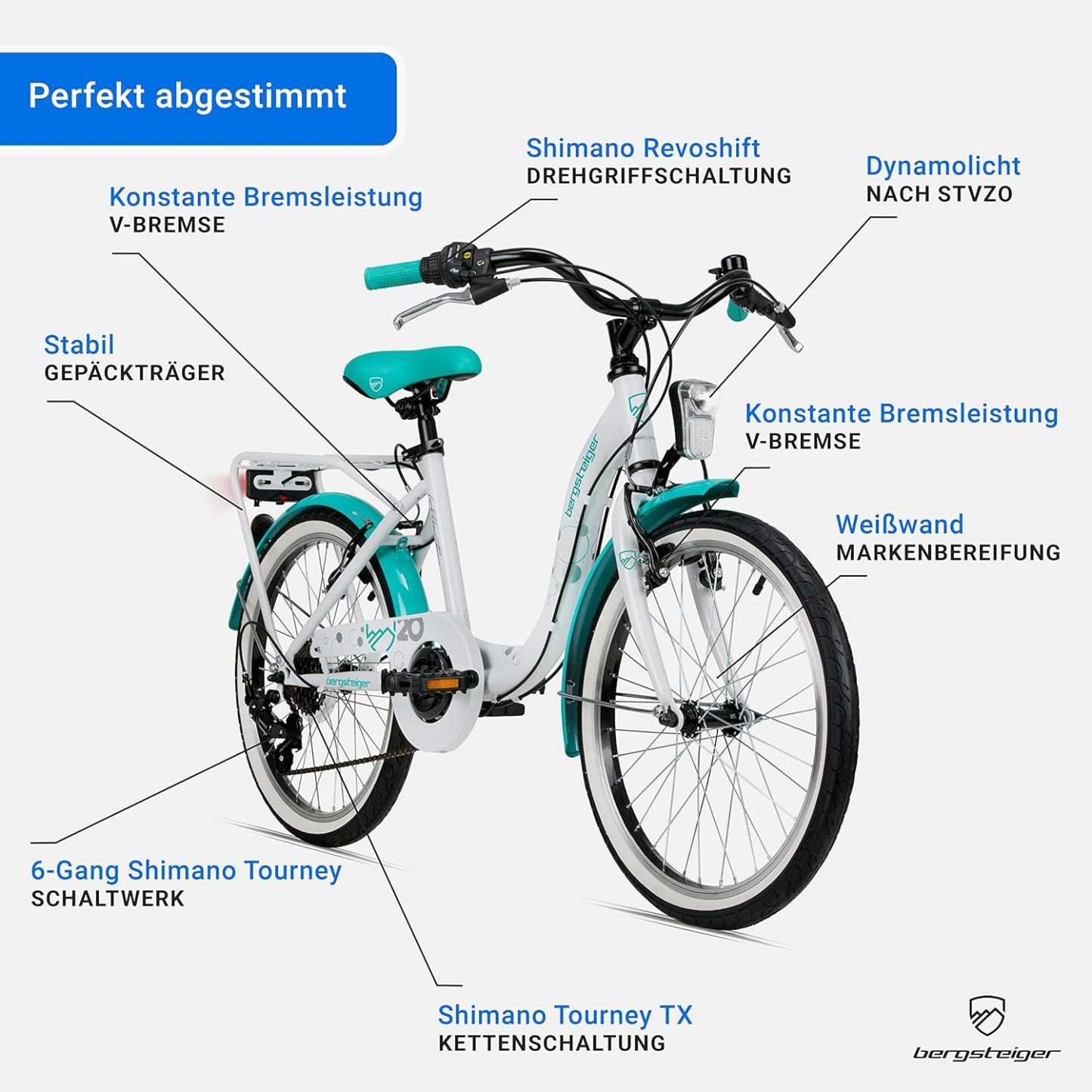 Bergsteiger Atlantis 20, 24 Zoll Kinderfahrrad, geeignet für 6,7, 8, 9, 10, 11 Jahre, StVZO, Shimano Schaltung, Mädchen-Fahrrad mit Dynamo-Licht