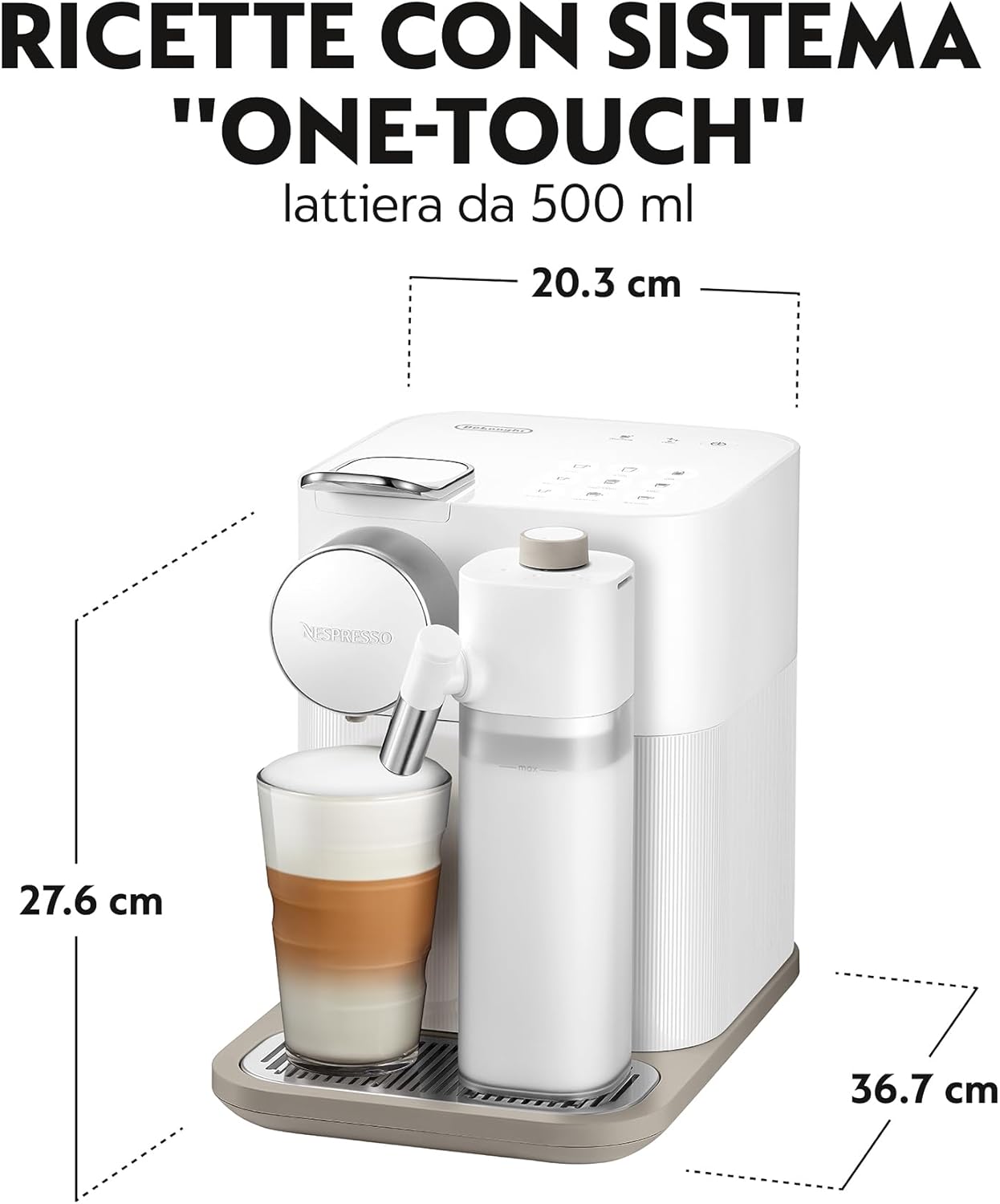 Nespresso De'Longhi Machine à café Gran Lattissima EN640.W avec système de lait automatique, pression 19 bar, 1400 W, Blanc