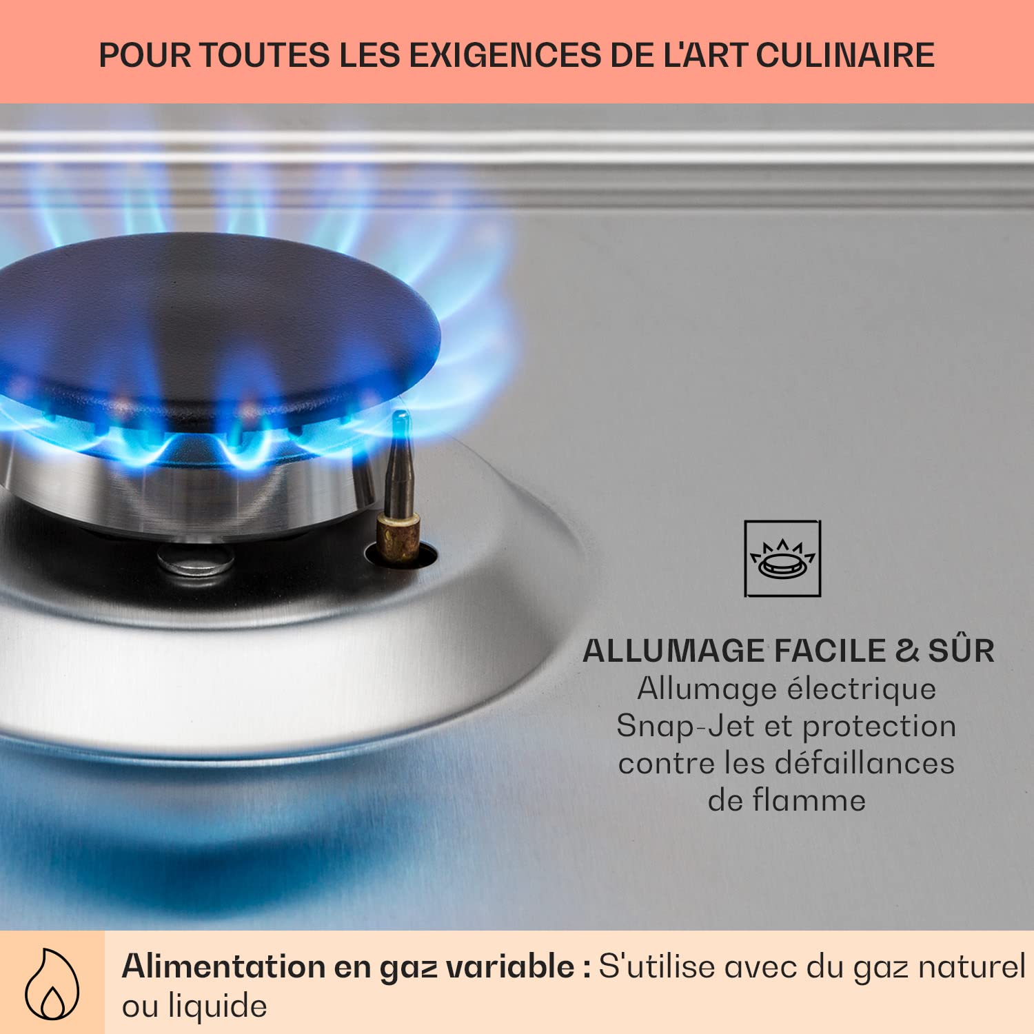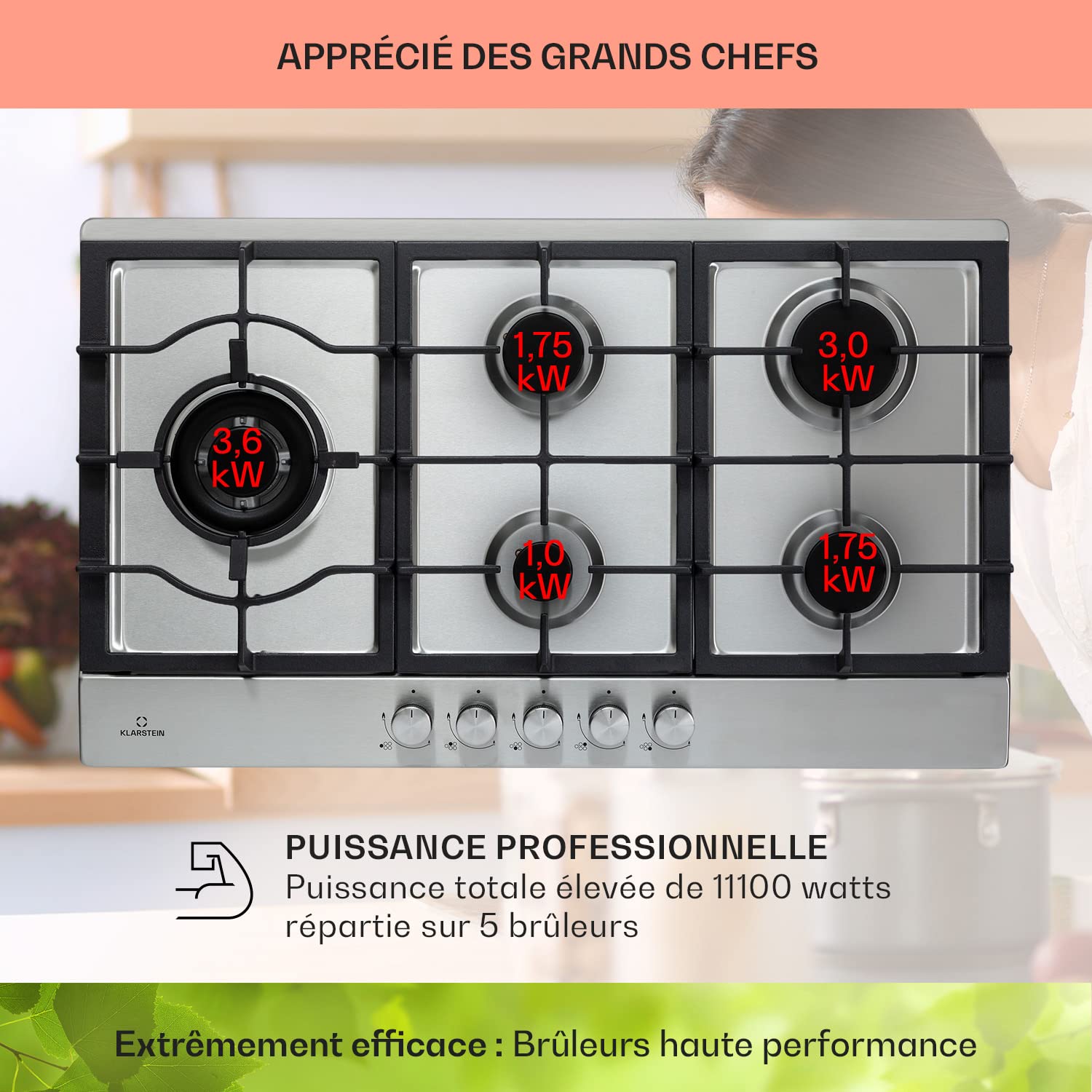 Klarstein Tables de Cuisson à Gaz, Plaque de Cuisson , Encastrable à 5 Feux de 11100W, Cuisiniere Gaz, Gaziniere avec Brûleurs en Acier Inoxydable, Cu