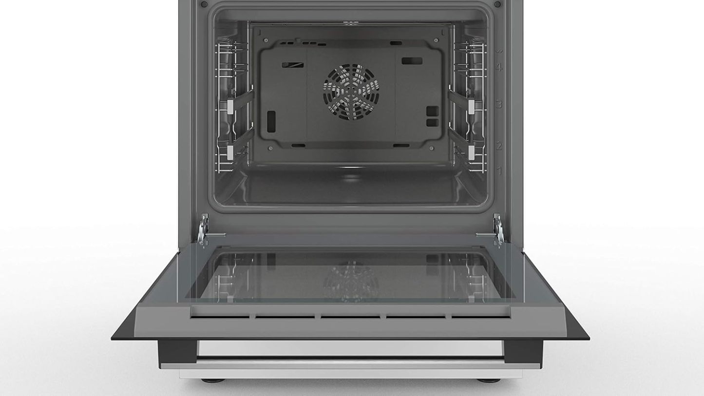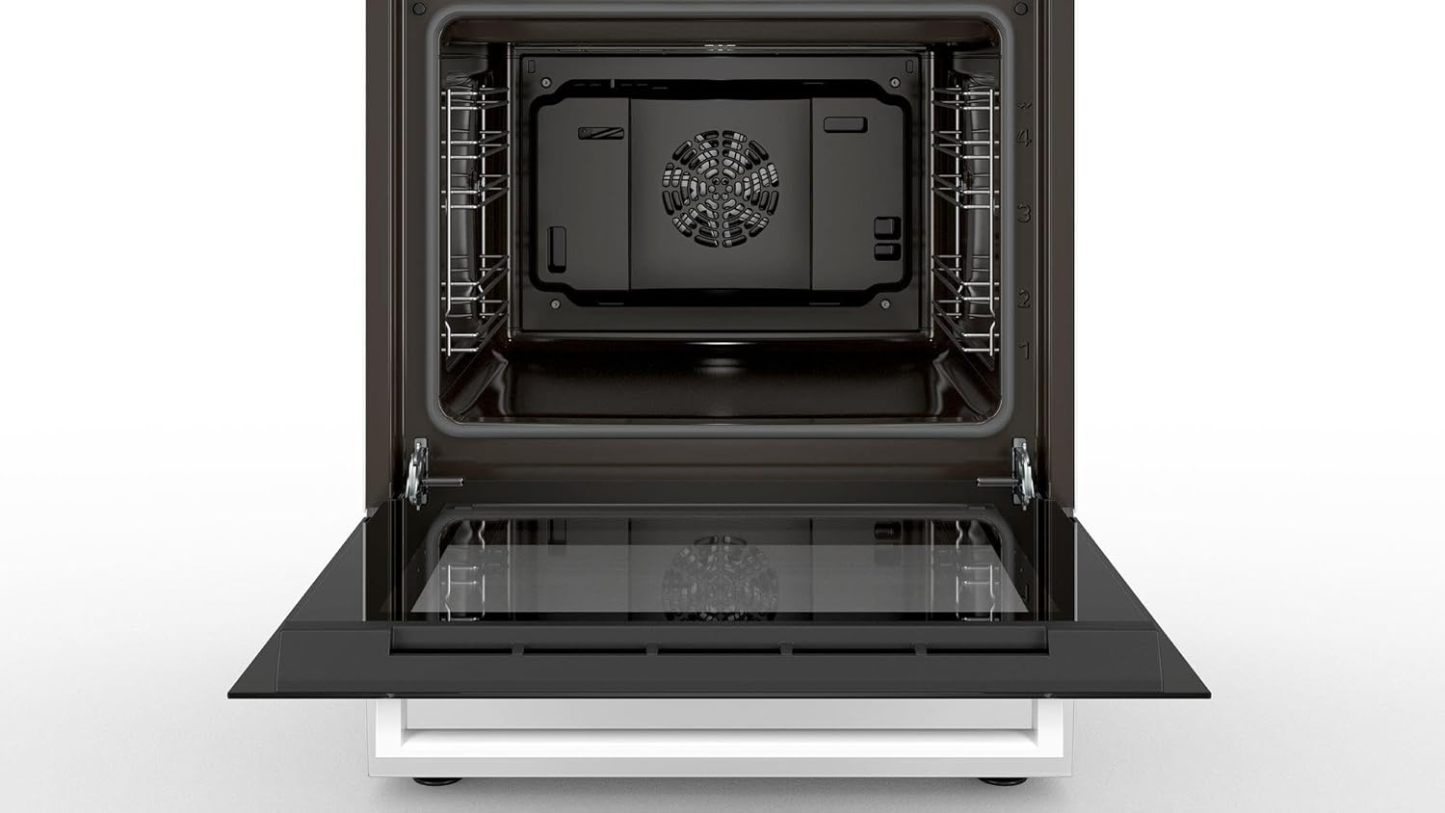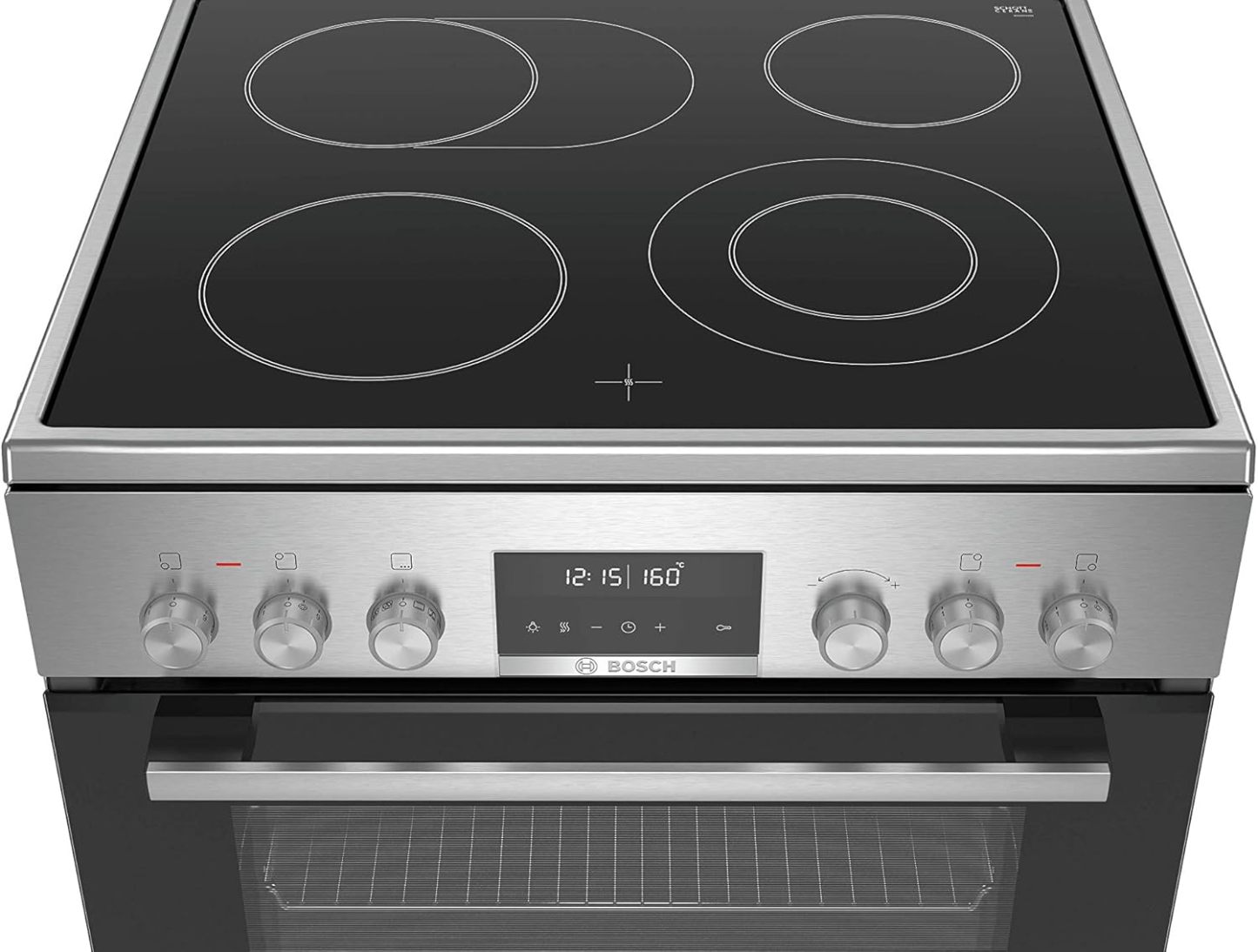 Bosch HKR39C250 Serie 4 Elektro-Standherd, 60 cm breit, EcoClean Direct Reinigungshilfe, 3D Heißluft Backen auf 3 Ebenen, LED-Display-Steuerung, erweiterbare Kochzone für großes Kochgeschirr