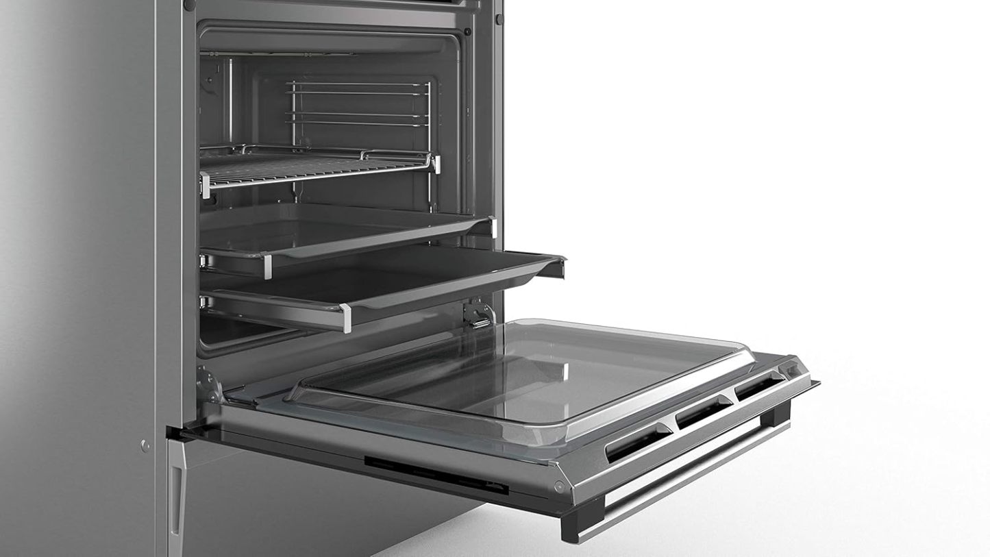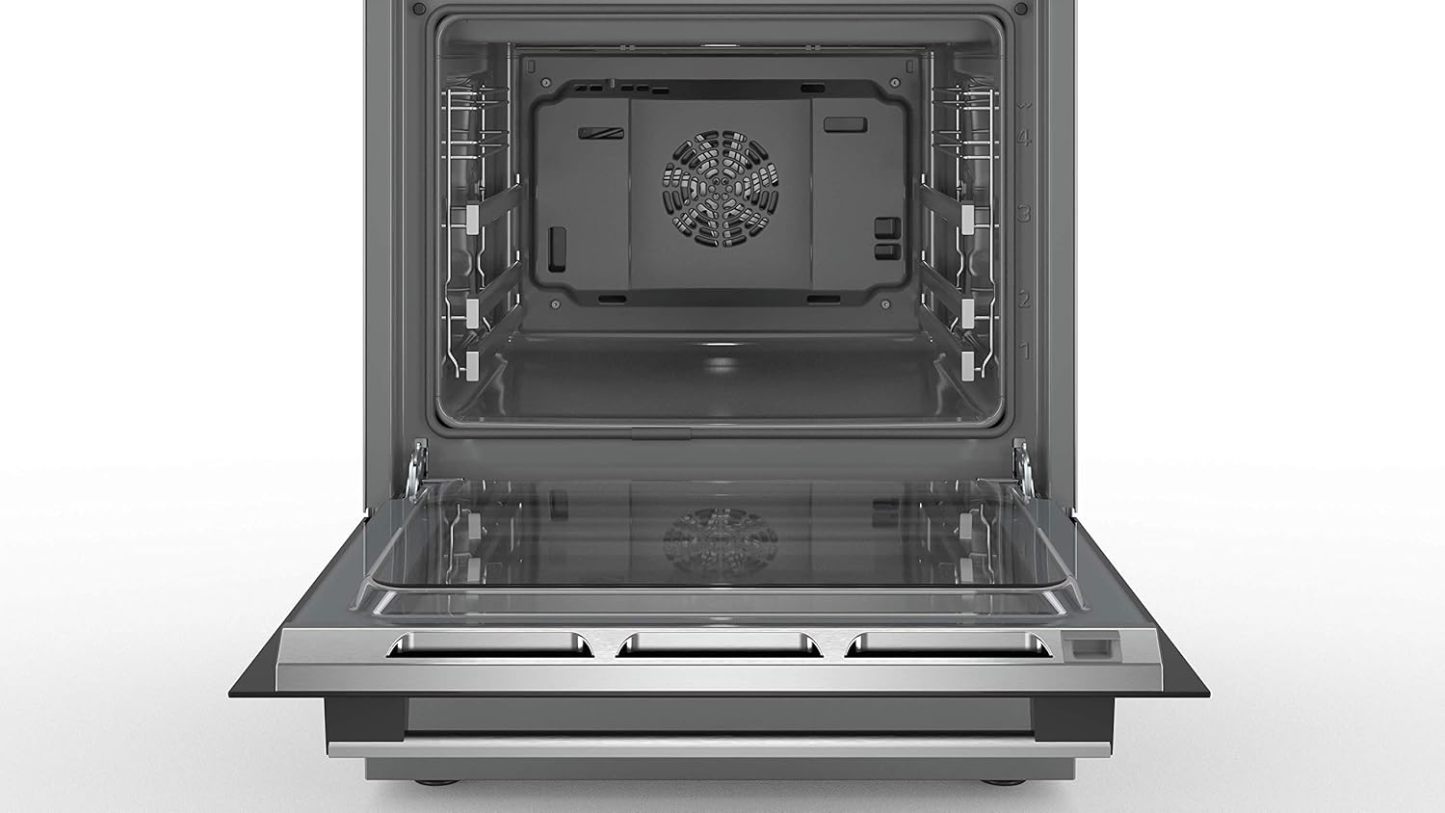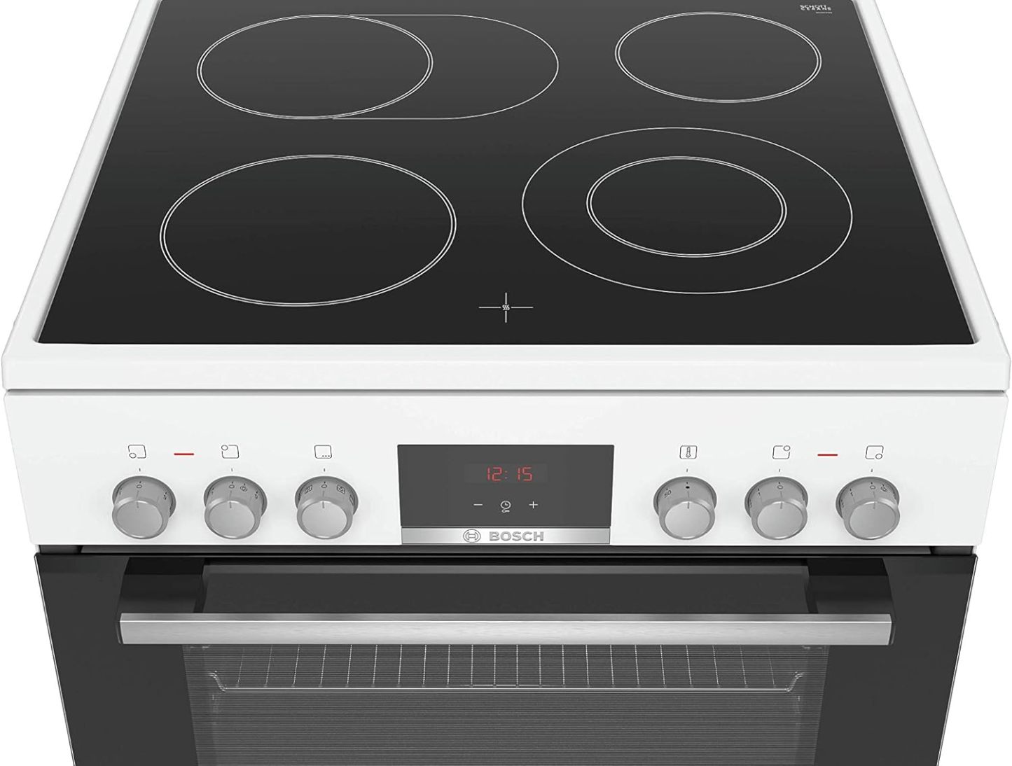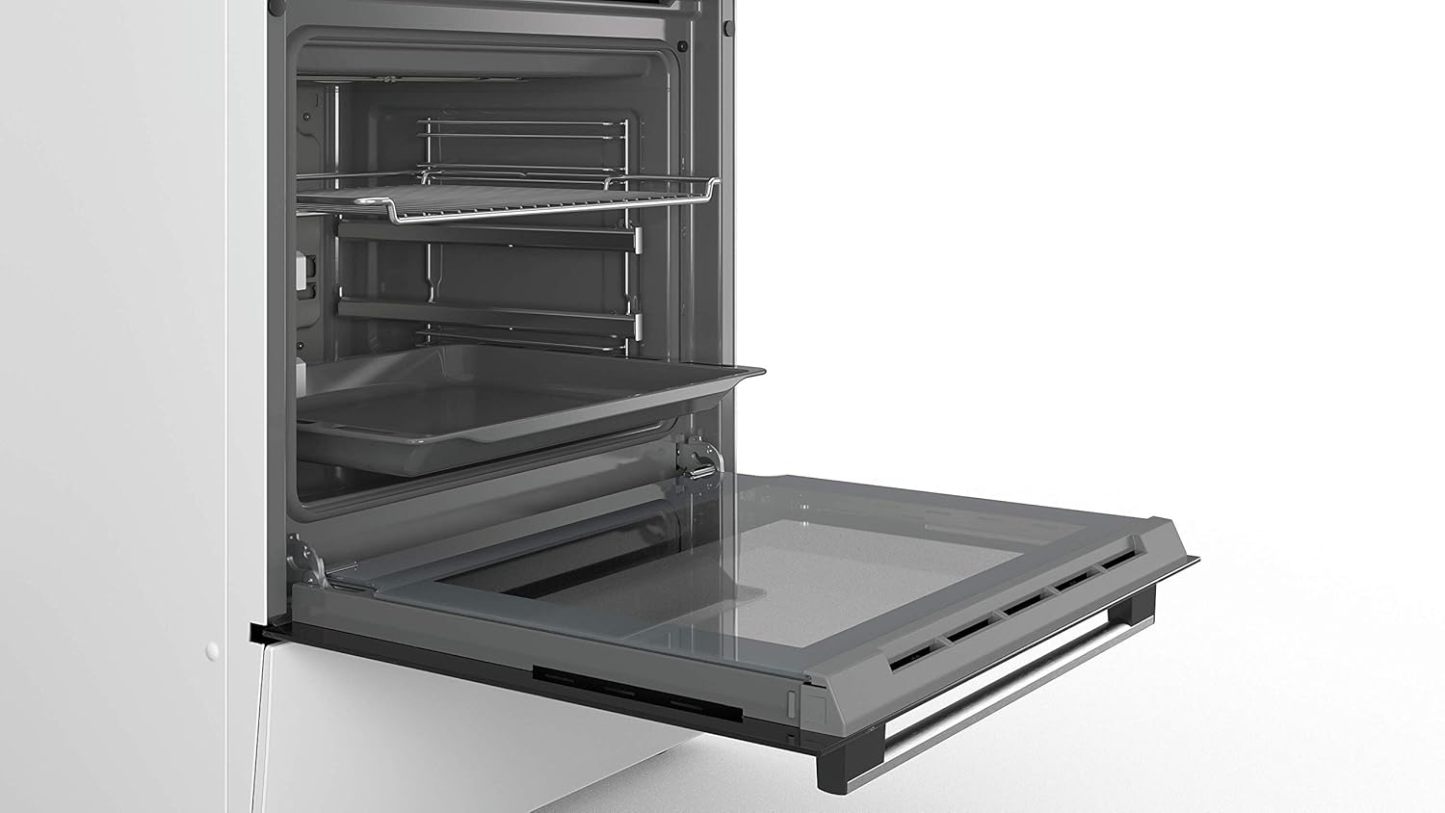 Bosch HKR39C250 Serie 4 Elektro-Standherd, 60 cm breit, EcoClean Direct Reinigungshilfe, 3D Heißluft Backen auf 3 Ebenen, LED-Display-Steuerung, erweiterbare Kochzone für großes Kochgeschirr