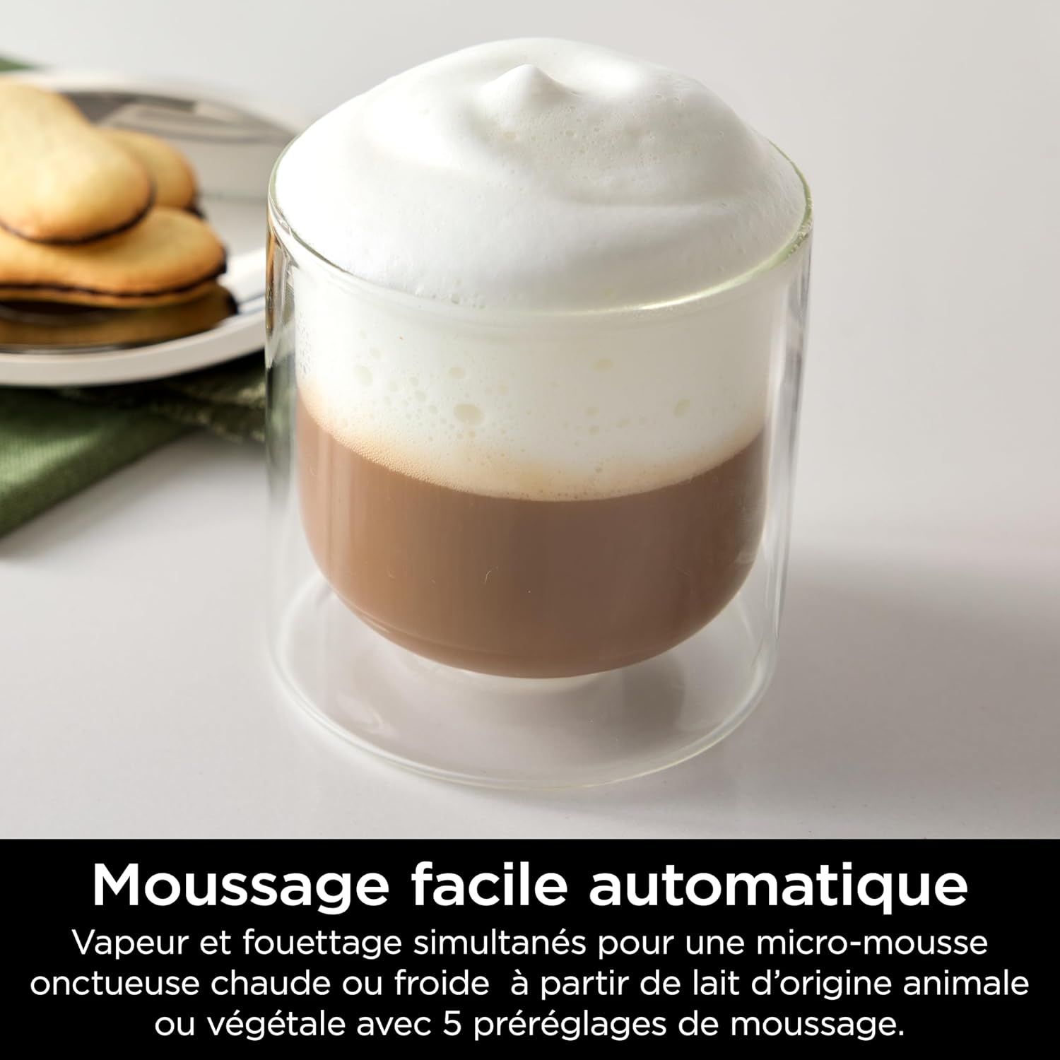 NINJA Machine à café Luxe Essential 2-en-1, Latte, Cappuccino et Espresso avec broyeur à grains et mousseur à lait intégrés, facile à utiliser, 2 préréglages mousse, argent, ES501EU