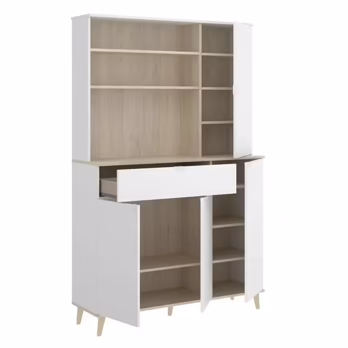 Meuble De Rangement Coloris Blanc/naturel Longueur 119 X Profondeur 40 X Hauteur 188 Cm Buffet de cuisine