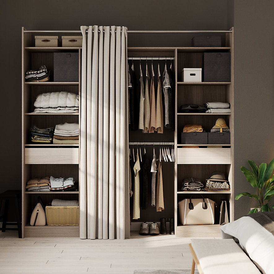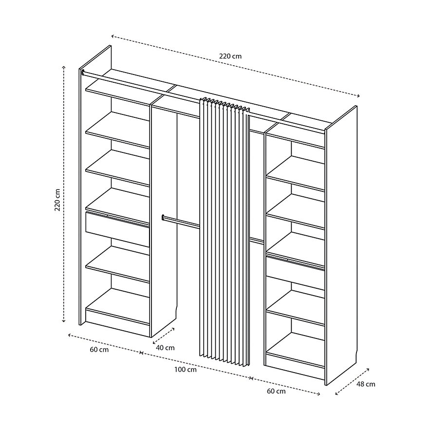 Kit dressing 2 colonnes réversibles avec 2 tiroirs effet chêne Balsam H. 220 x L. 220 x P. 48 cm