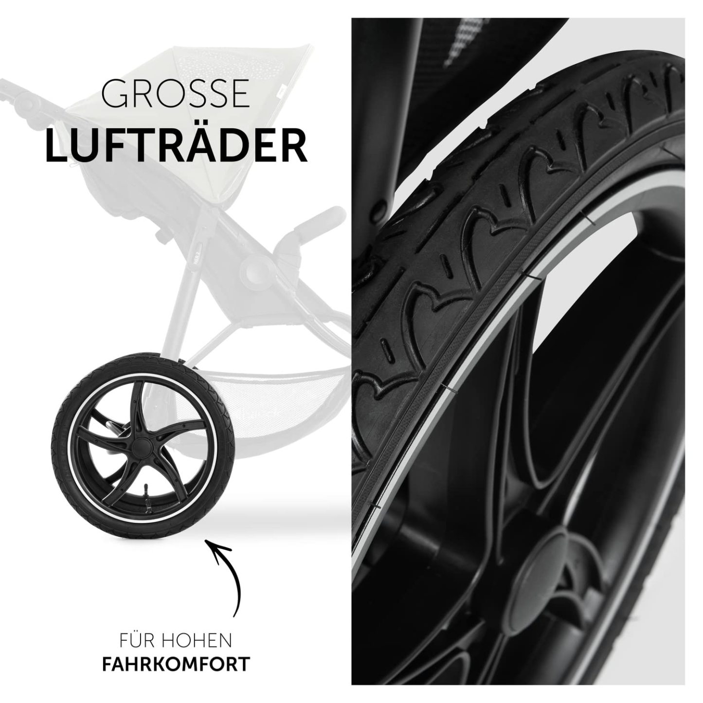 hauck Kinderwagen Runner 2, Dreirad Buggy mit XL Lufträder für Kinder bis 22 kg, UV-Schutz 50+, Belüftungsfenster, Höhenverstellbar, Faltbar, XL Korb bis 3 kg, Liegefunktion (Black)