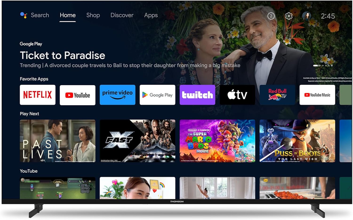 THOMSON 55 Pouces (139 cm) 4K Ultra HD Smart Android TV, Google Assistant, Wi-FI, Dolby Digital, Bluetooth, Triple-Tuner (Câble/Satellite/Antenne), HDMI, CI+, A+ Panneau – 55UA5S13 [Classe énergétique E]