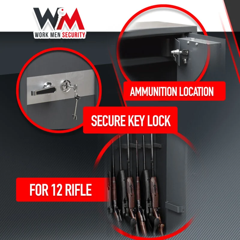 Armoire à fusils 500X340X1450mm avec coffre intérieur - 12 fusils - Workmen Security