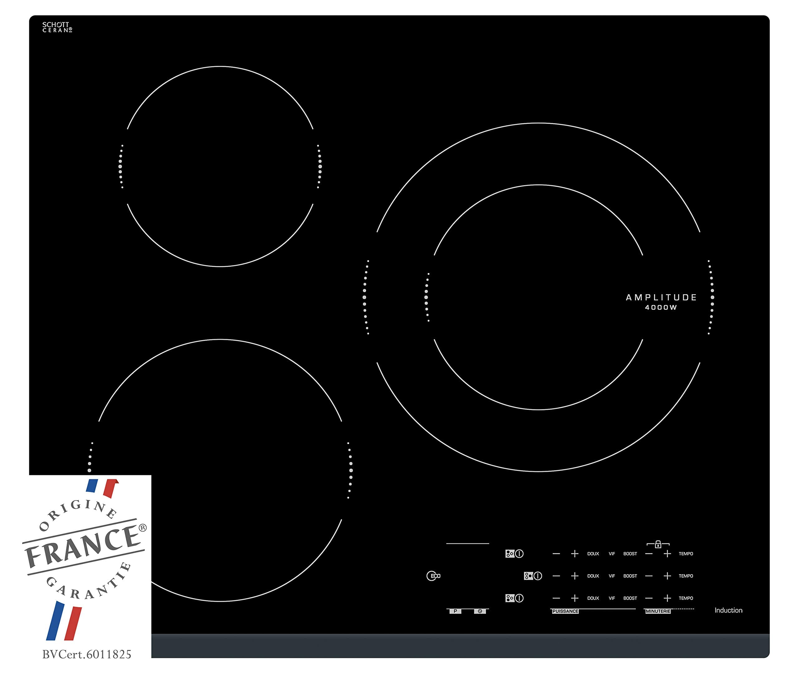 Sauter - SPI4360B - Plaque Induction - Table de Cuisson Encastrable - Noir - 3 Foyers - 7200W - Dimensions Encastrement : 56x49cm - Grand Foyer 28 cm