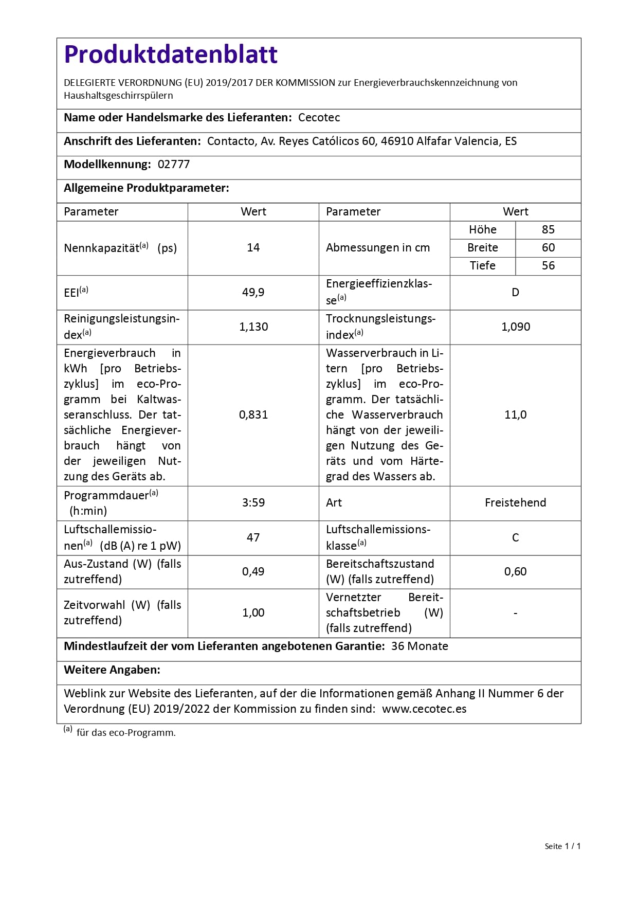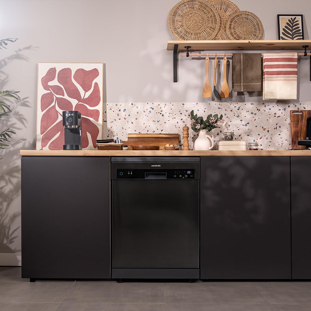 Cecotec Lave-Vaisselle Indépendant de 60 cm Bolero Aguazero 6200 Dark D, 1850W, 14 Couverts, 6 Programmes, Dual Zone Wash, Turbo Dry+, Demi-Charge, Dé