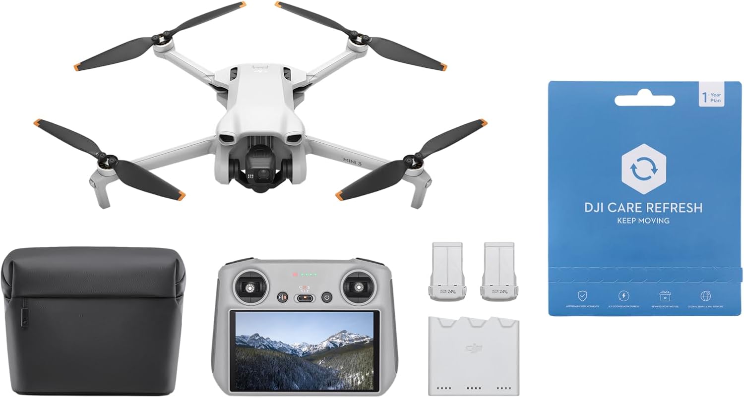 DJI Mini 3 (DJI RC) – Mini Drone Caméra Léger avec Nacelle Mécanique à 3 Axes, Vidéo 4K HDR, Temps de Vol de 38 Minutes, Transmission Vidéo jusqu’à 10 km, Prise de Vue Verticale, Retour Intégré, C0