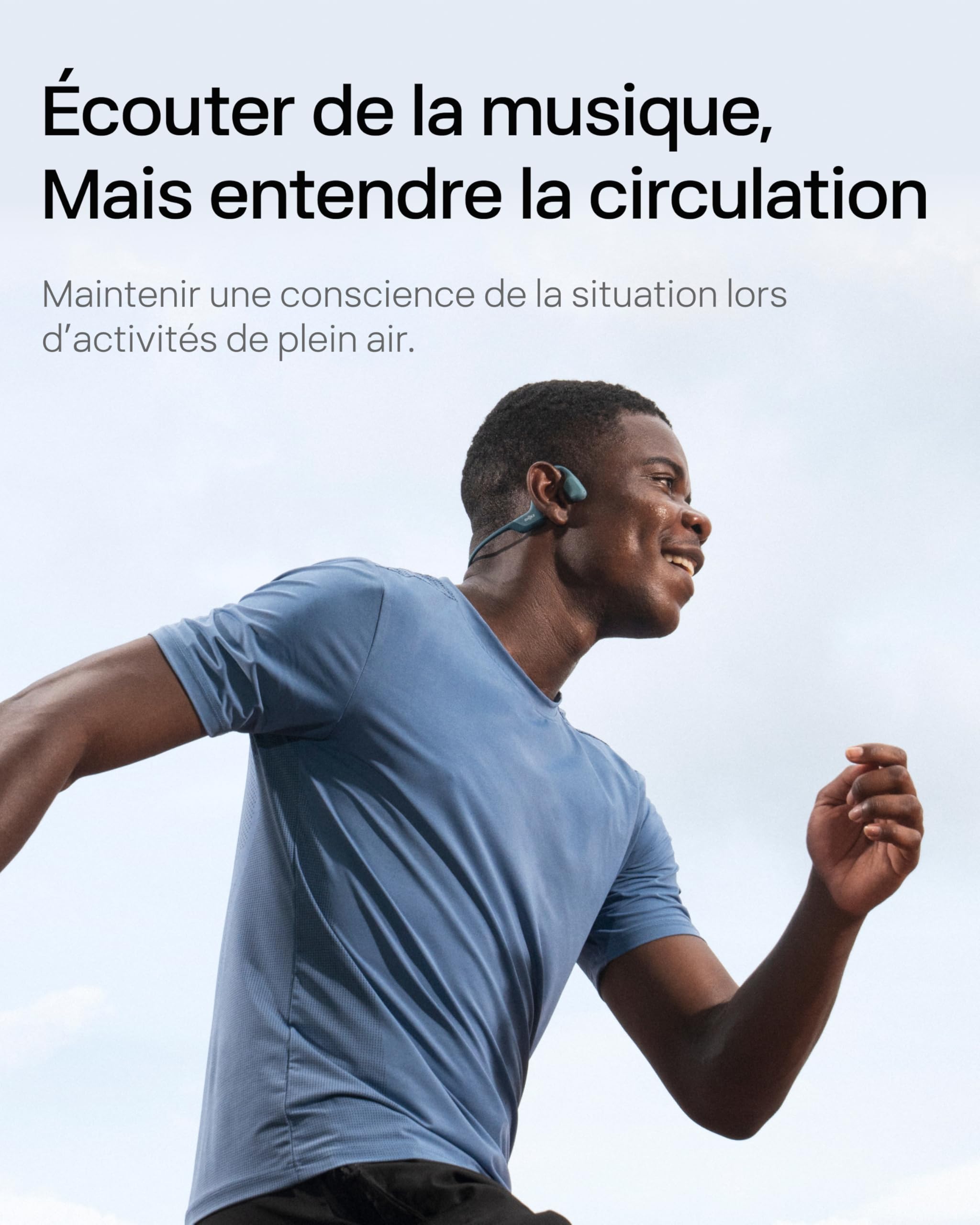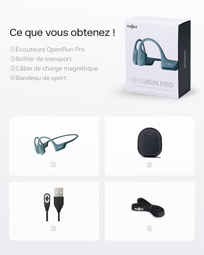 SHOKZ OpenRun Pro Casque à Conduction osseuse, écouteurs Bluetooth oreillles Libres pour Le Sport avec Micro, Casque sans Fil étanche IP55, 10H d’autonomie, Bandeau de Sport, Bleu