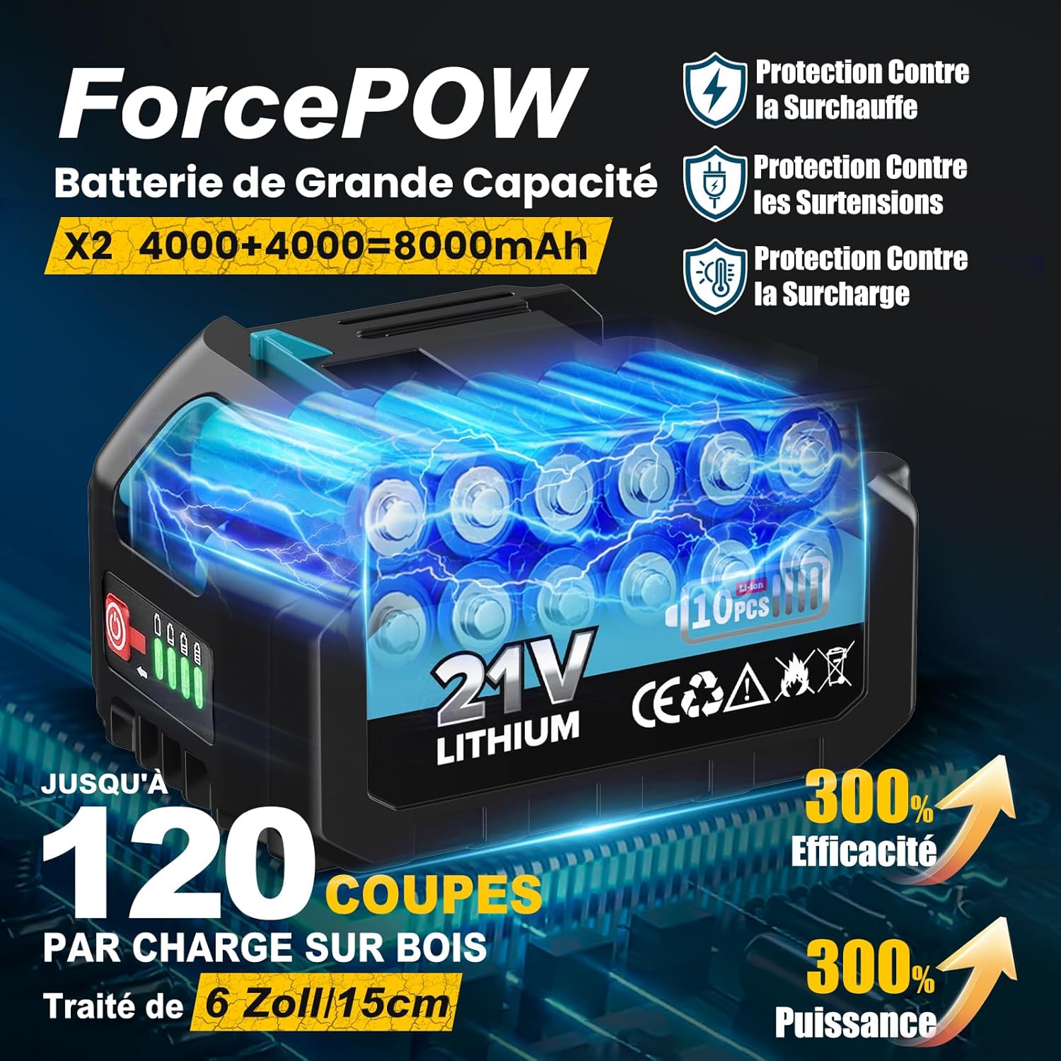 Mini Tronconneuse a Batterie, Tronconneuse Electrique Sans Fil de 6 Pouces 8000mAh avec Graisseur Automatique, Elagueuse Batterie pour l'élagage le Jardin Projets DIY