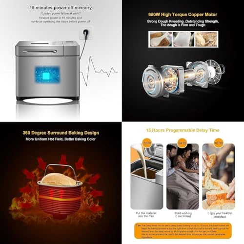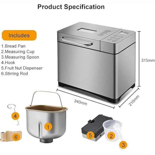 Machine à pain for la maison, machine à pain avec distributeur de fruits et noix, machine à pâte avec 17 menus prédéfinis et réservation de 15 heures, maintien au chaud d'une heure, 3 tailles de pain : Cuisine et Maison