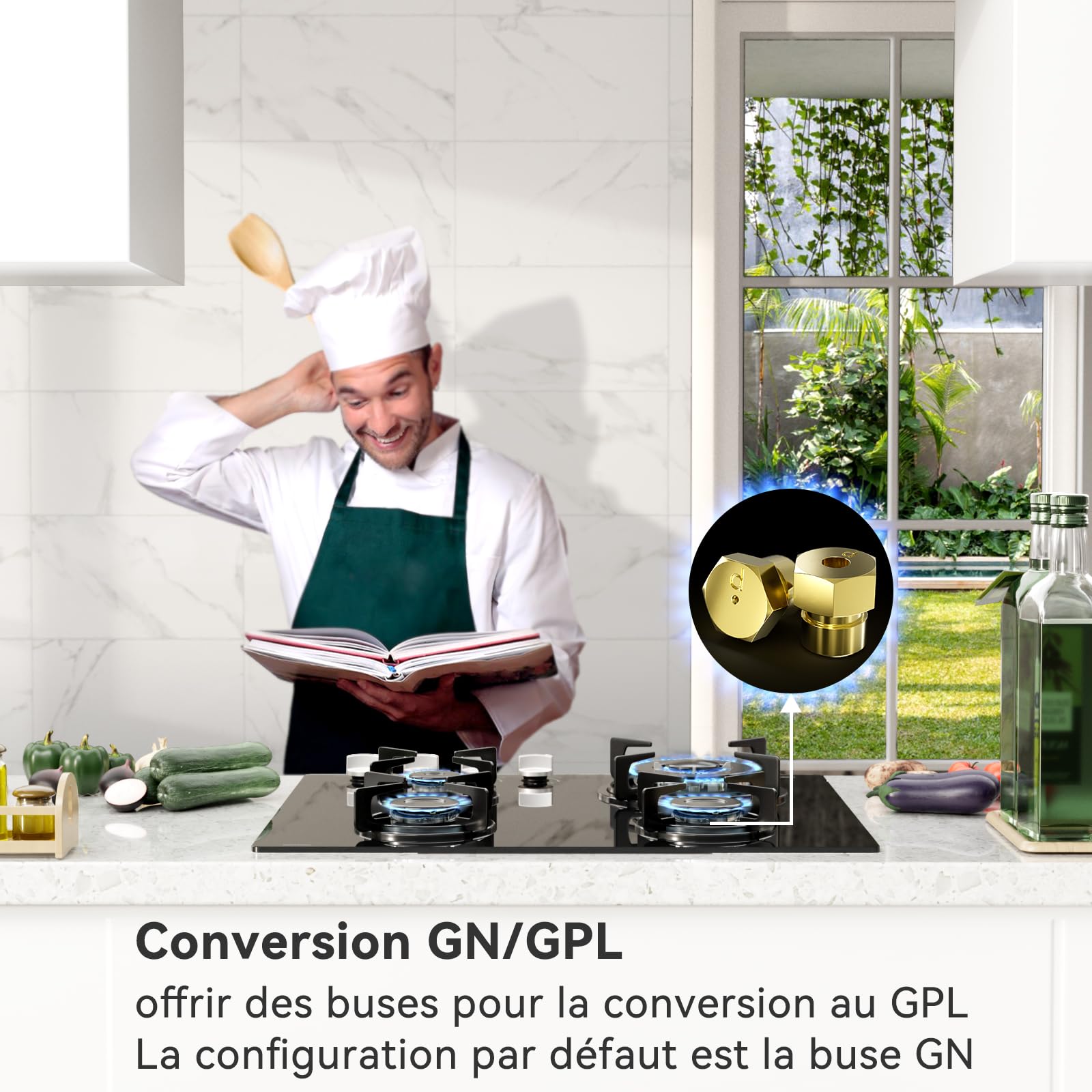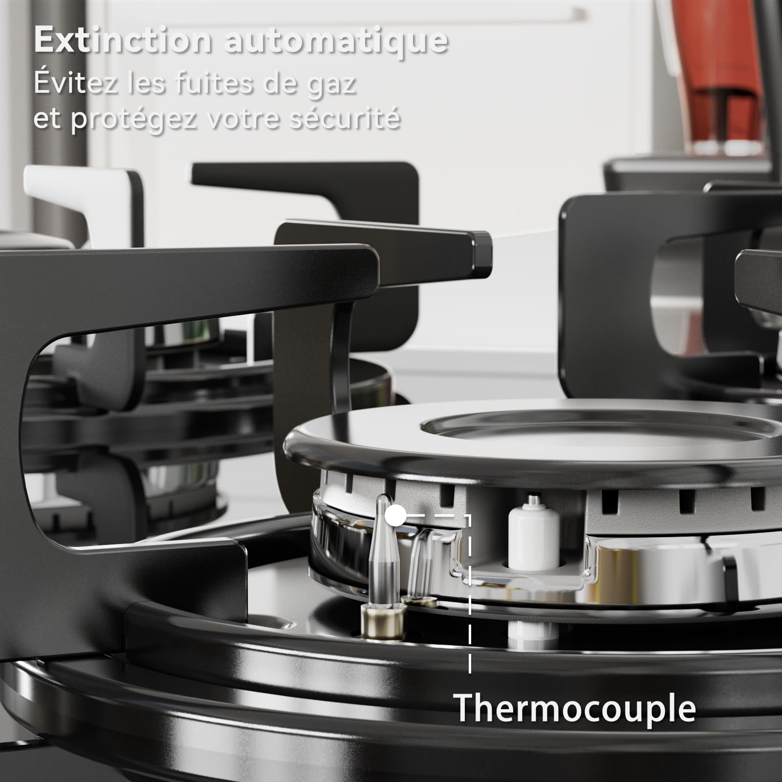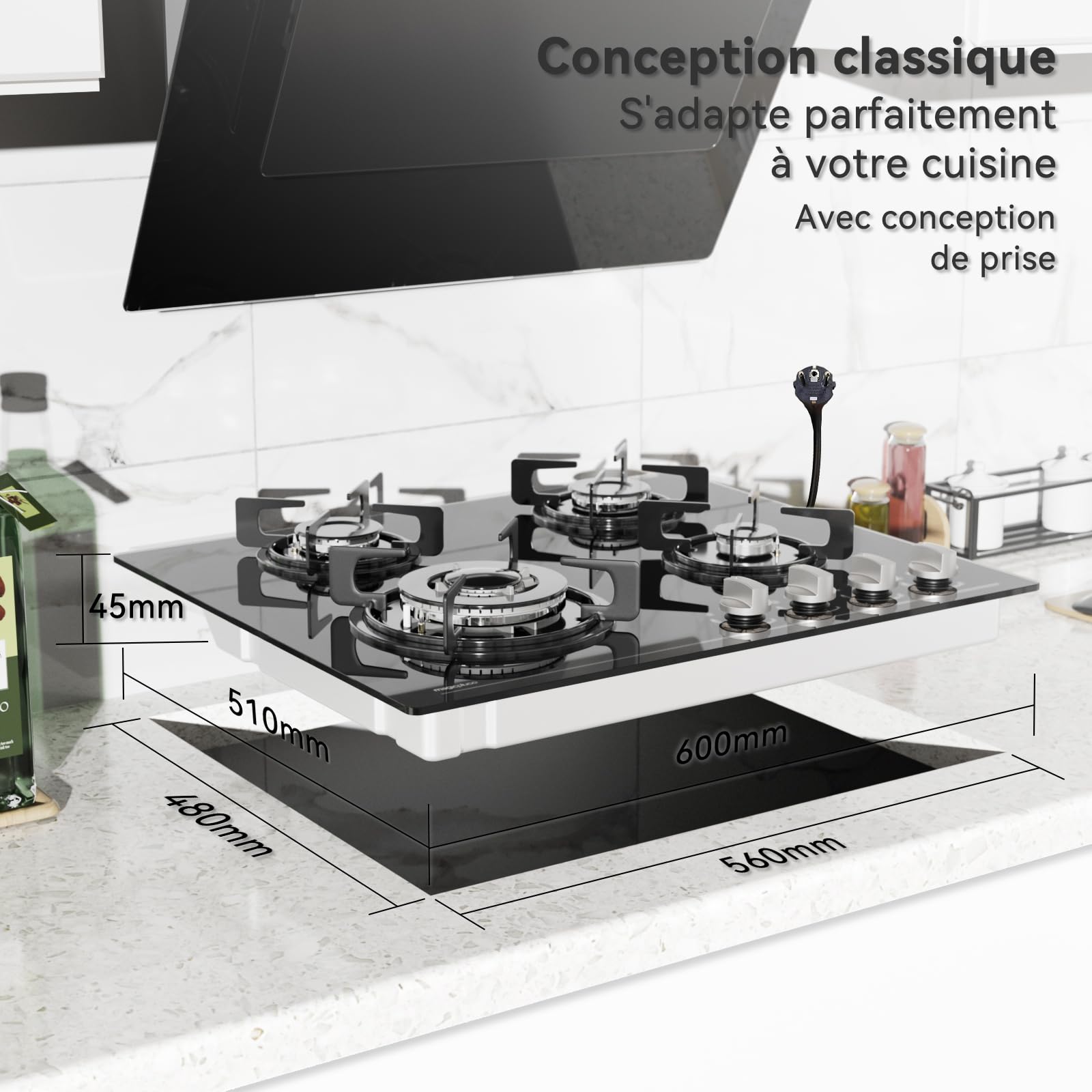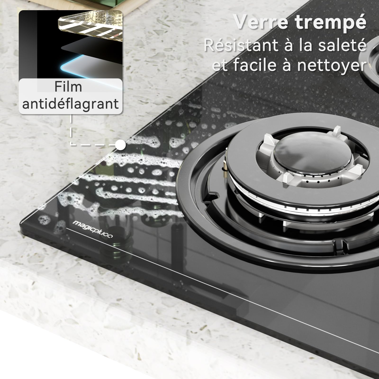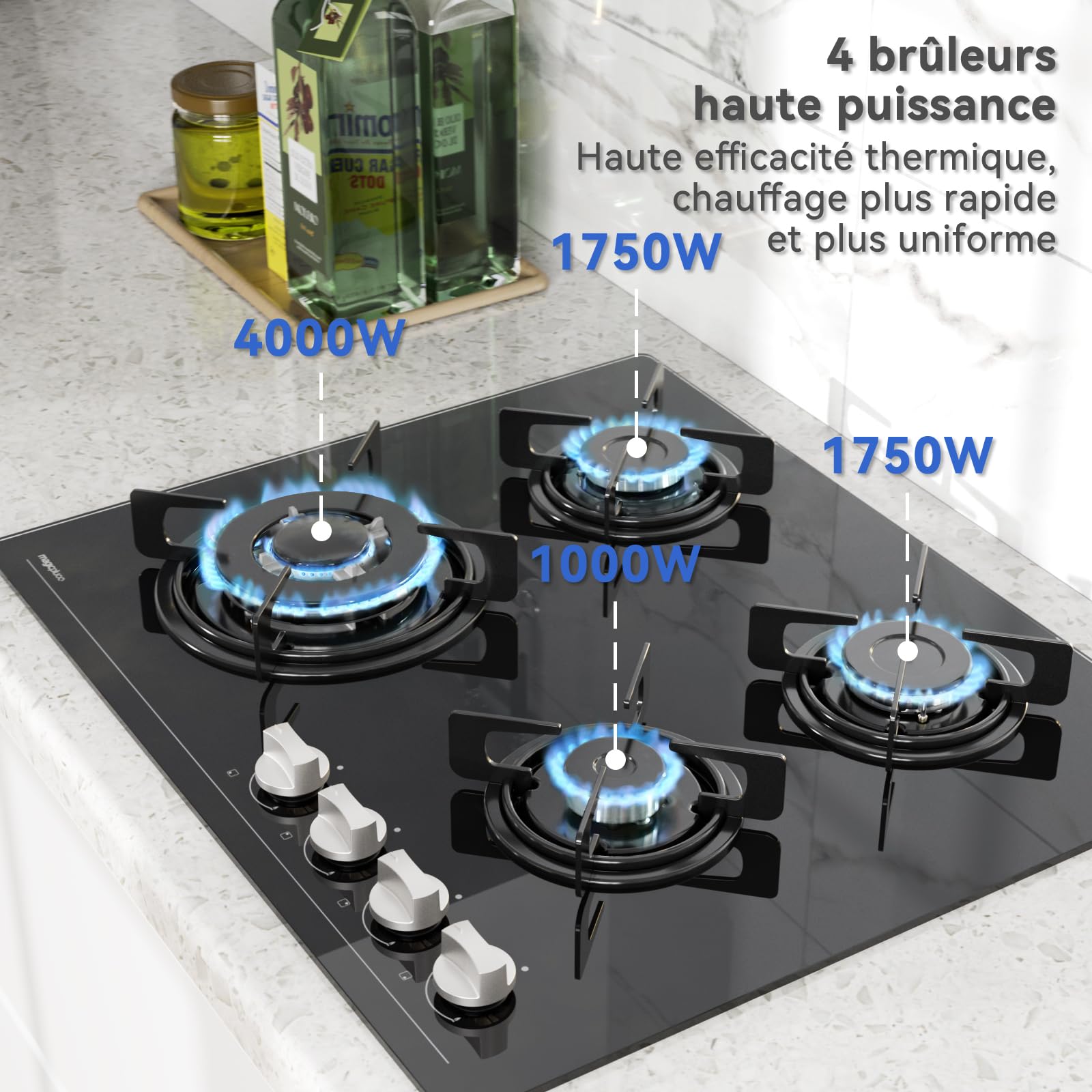 Magicplux Plaque de Cuisson Gaz 4 feuxs, 60cm, Gaziniere Encastrable, Gaz ville et bouteille, 8500W