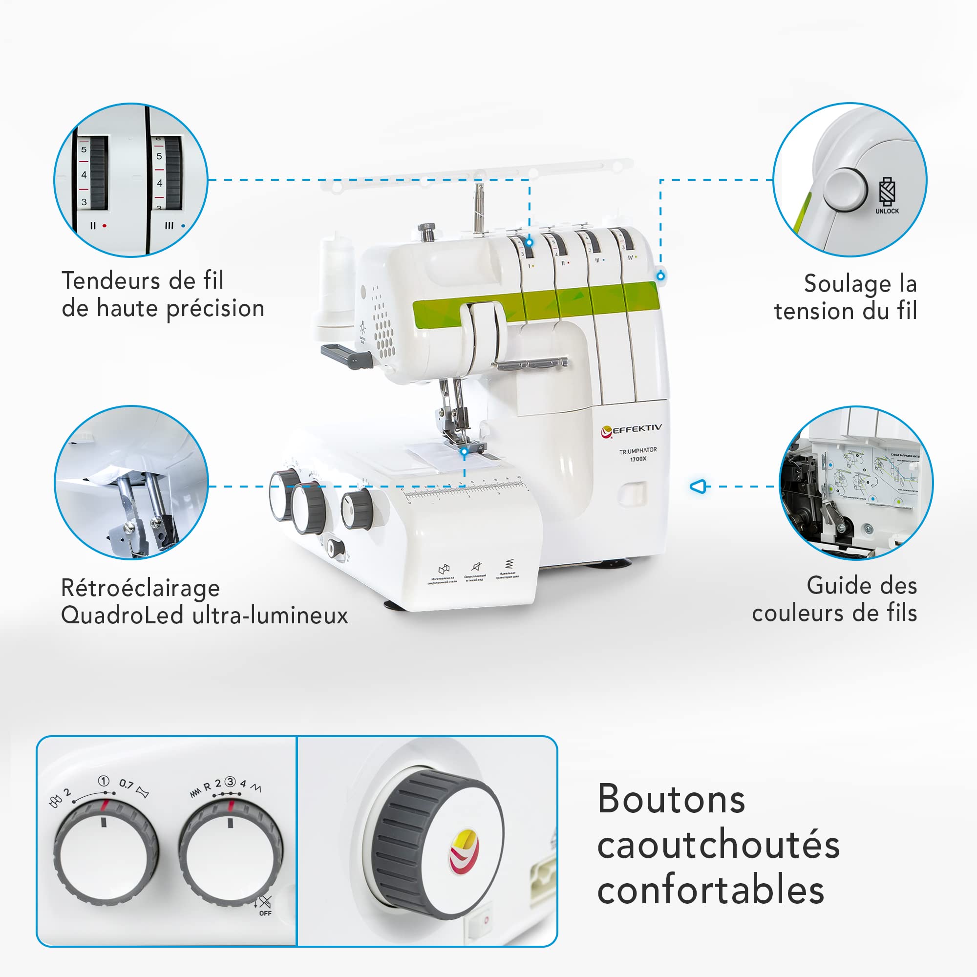 EFFEKTIV Surjeteuse Triumphator 1700X, Machine à Coudre Overlock, Filetage 3/4 Avec Différentiel, Cadre Entièrement en Métal, 14 points, Automatique,