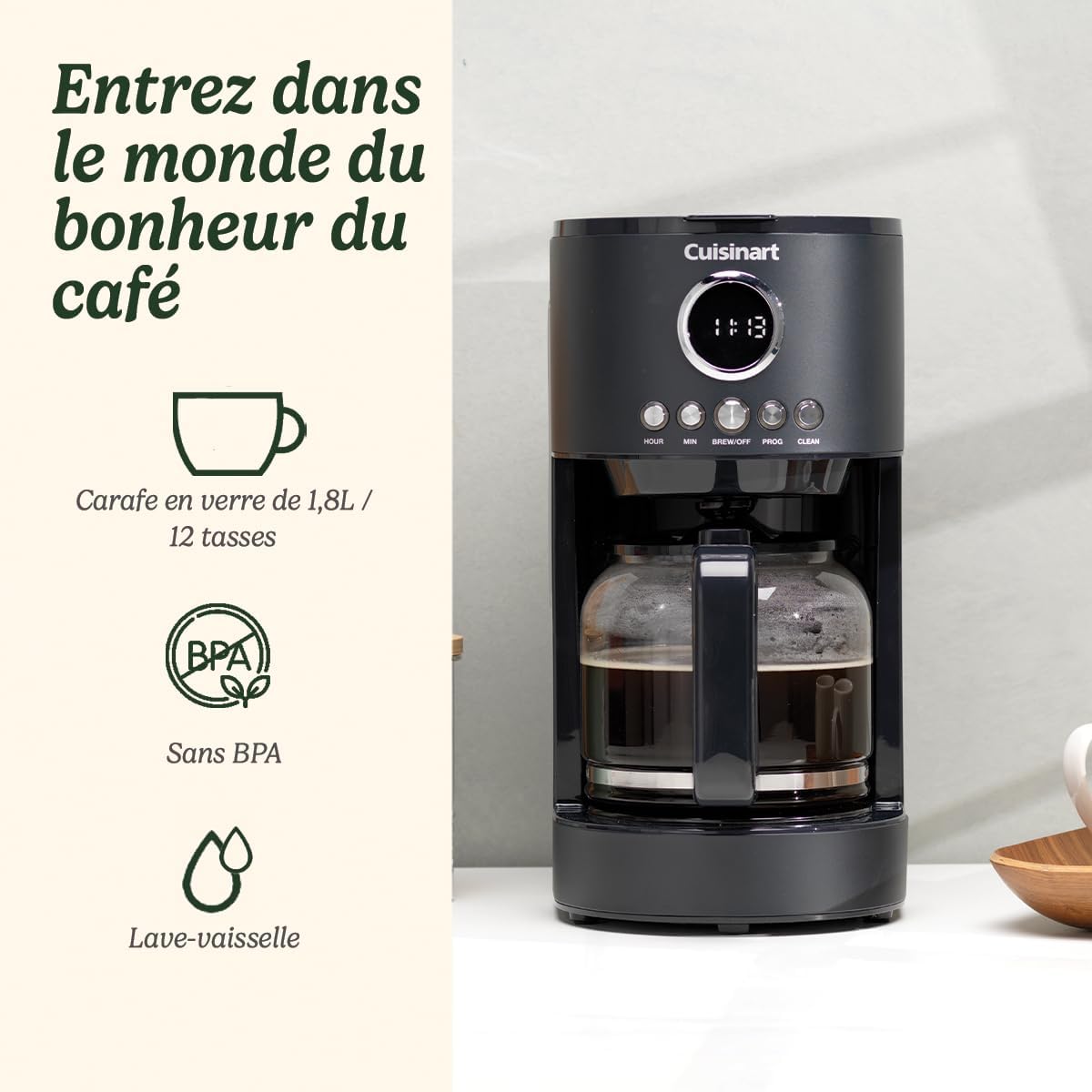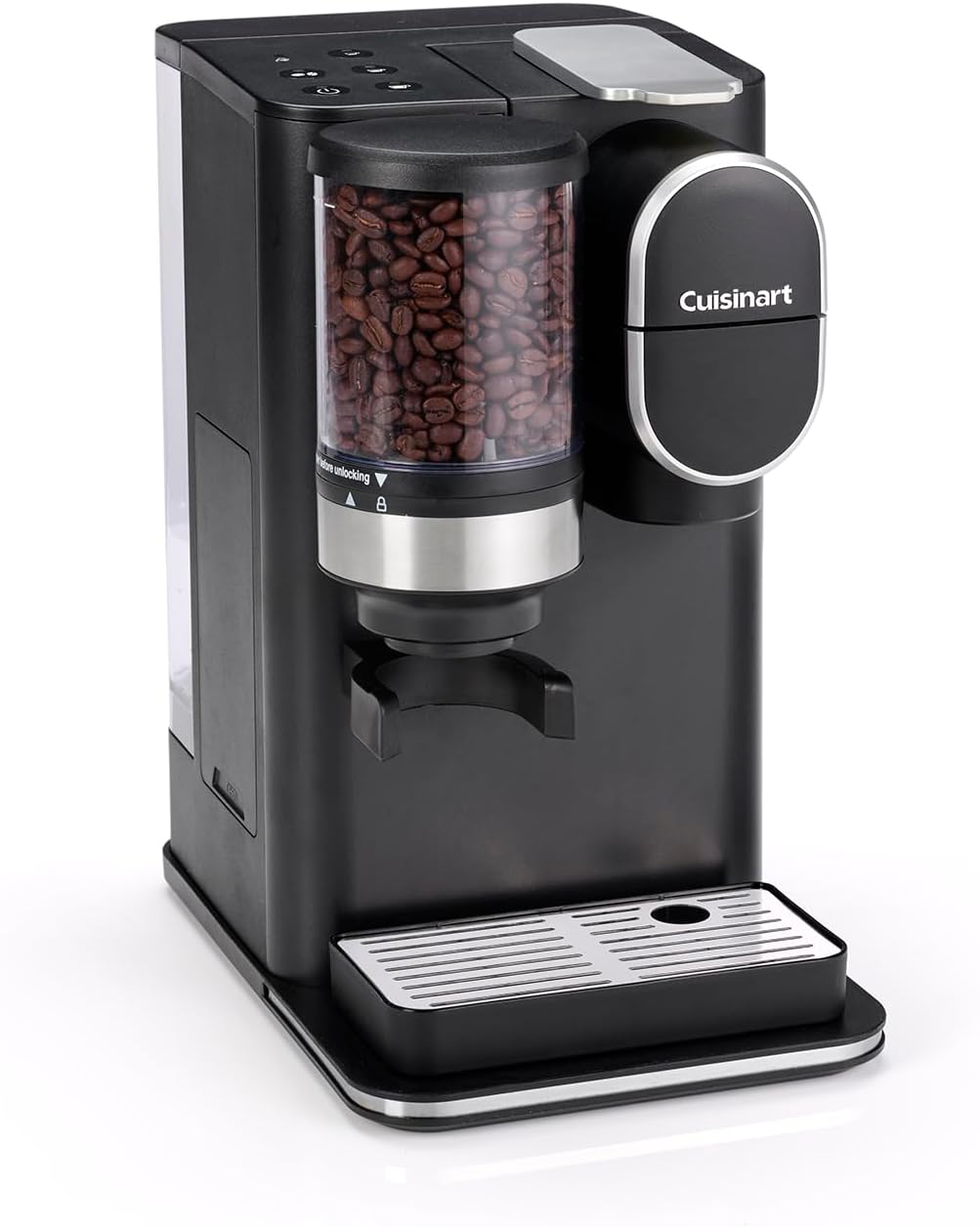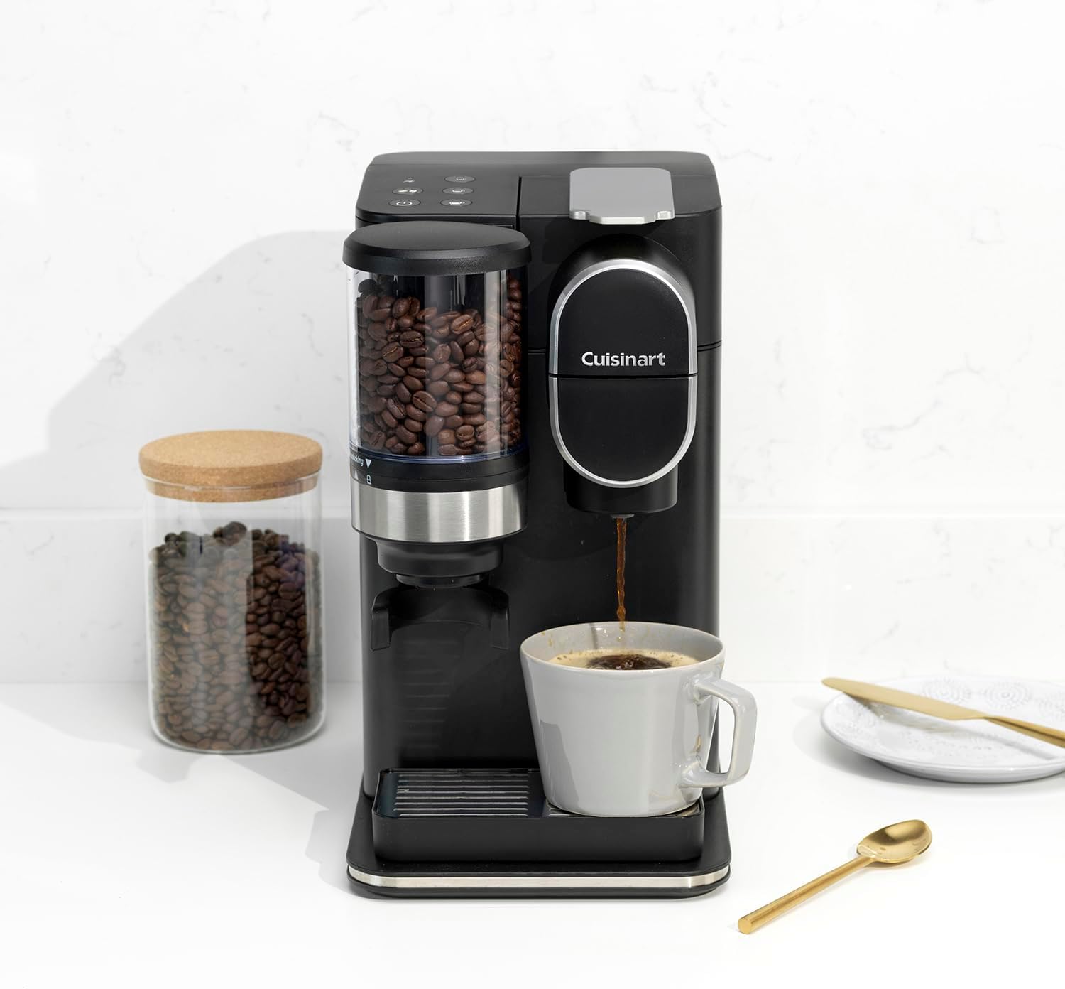 Cuisinart One Cup Grind And Brew - Machine à café avec broyeur intégré | Grain à moudre, Café filtre en portion individuelle | choisissez 3 tailles de tasse | Dosette filtrante réutilisable | Noir